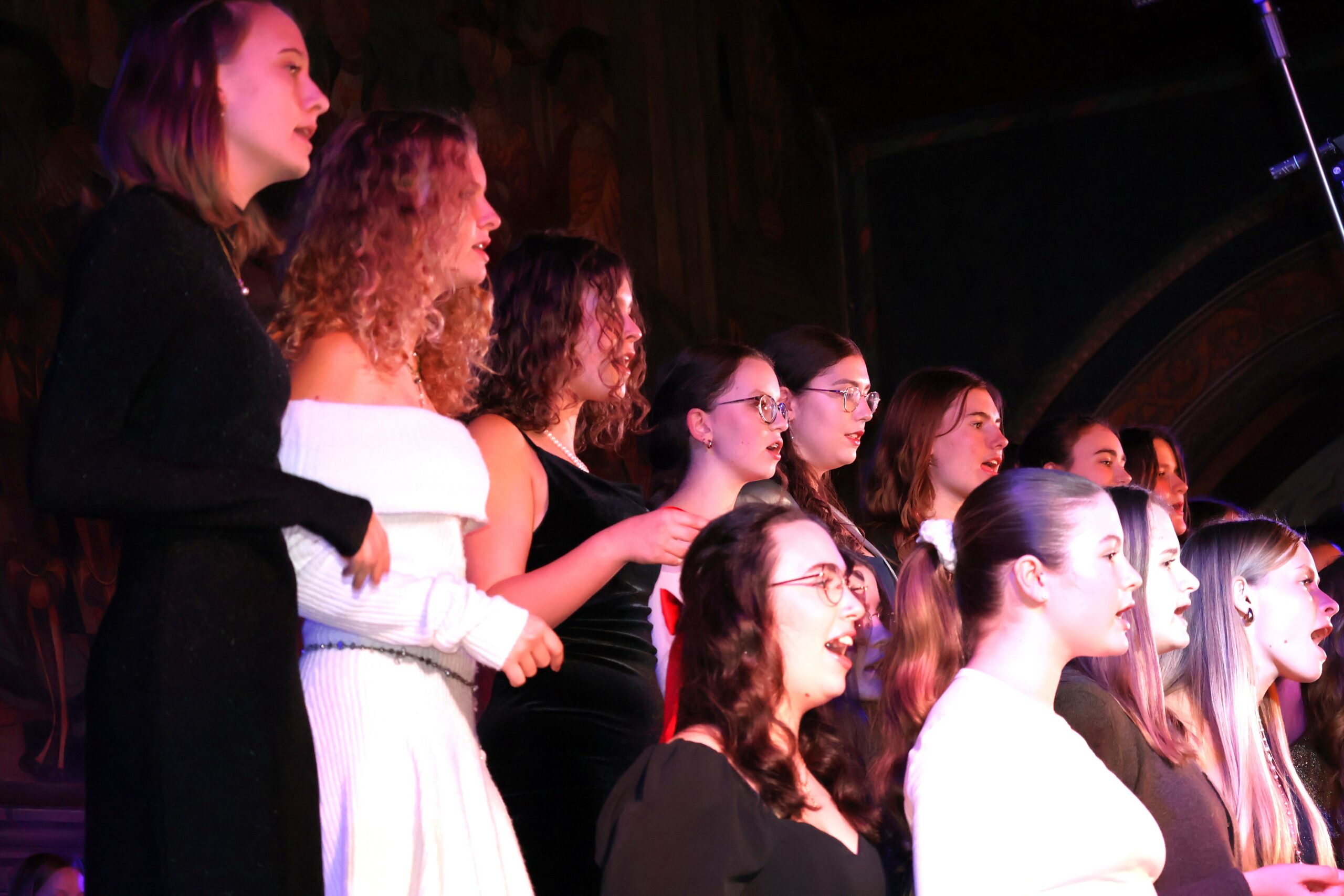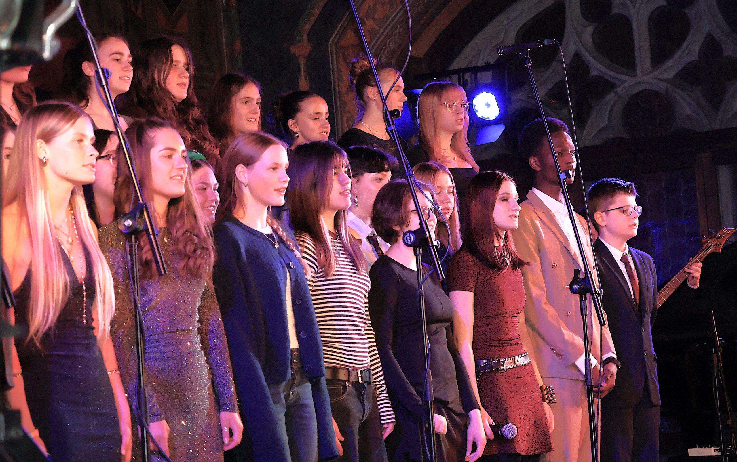 Der Oberstufenchor (Foto unten) trat mit vier Werken auf die Bühne – Sonderlob dabei für die Interpretation von „Gloria in excelsis“.