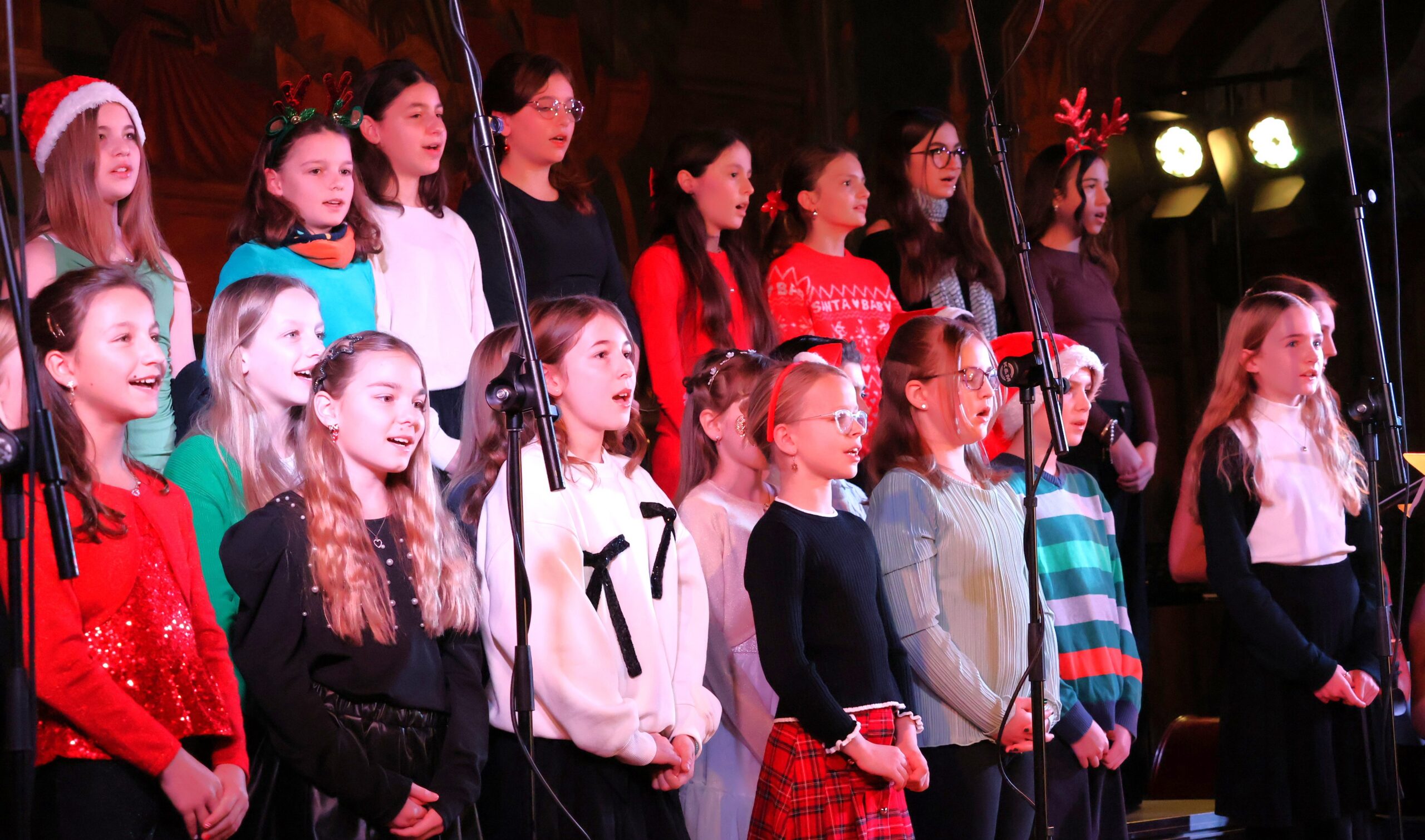 Die Jüngsten des Gymnasiums – der Unterstufenchor – begeisterten mit einem Winter-Song und mehr … siehe Foto unten. Mit Lehrerin Gisela Sandner an der Seite boten sie eine starke Leistung.
