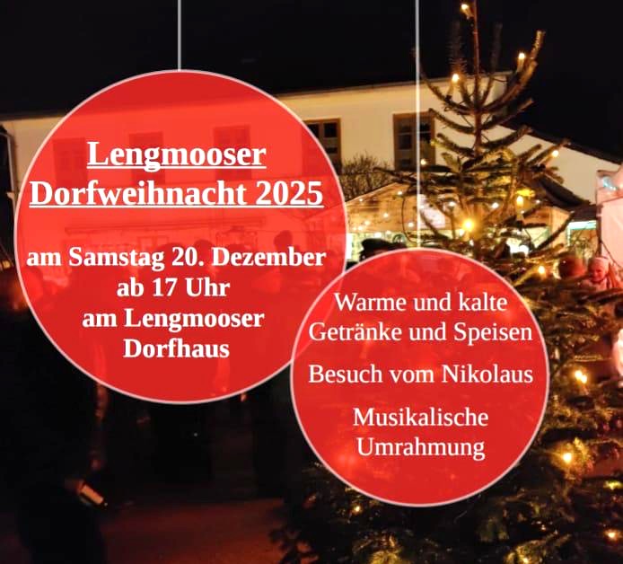 Am kommenden Samstag, 20. Dezember, findet ab 17 Uhr die traditionelle Lengmooser Dorfweihnacht statt. Mit kalten und warmen Speisen sowie Getränken ist für das leibliche Wohl bestens gesorgt.