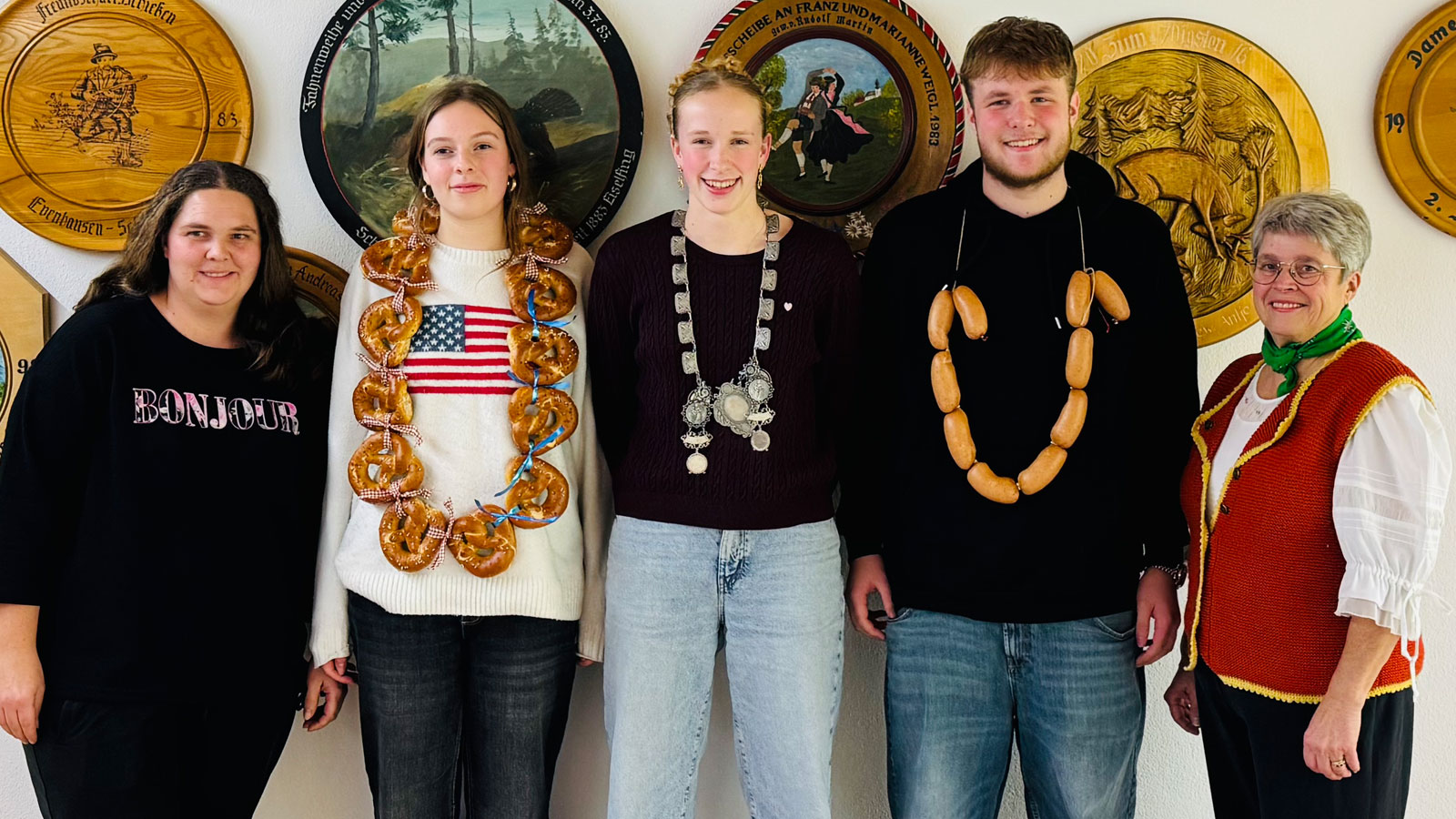 Die Schützen der Schüler- und Jugendklasse mit den Jugendleitern Valentin Bichler und Barbara Martin (links im Bild), sowie Schützenmeisterin Annemarie Althof (rechts).