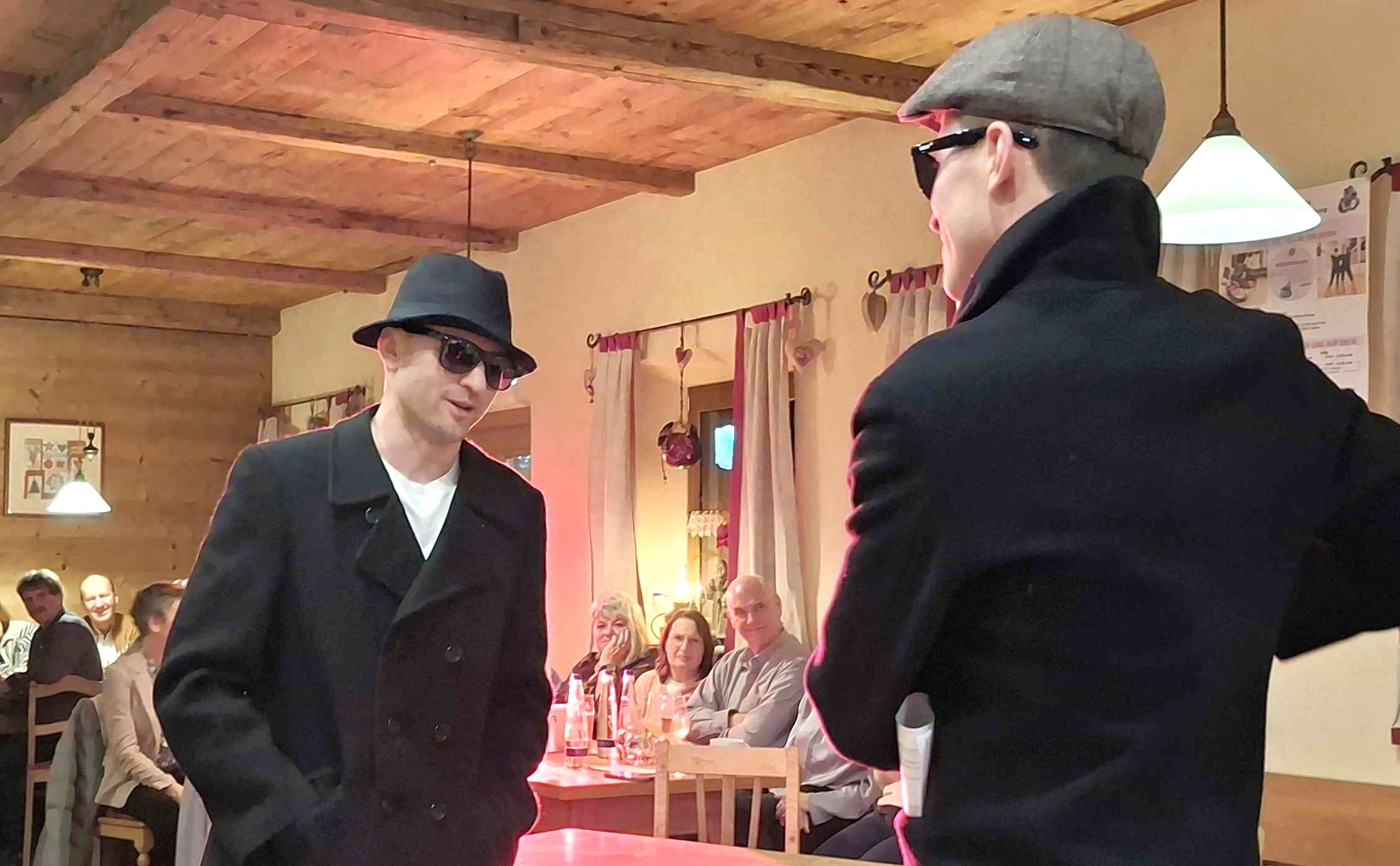 Nach einem gemeinsamen Essen durften sich alle auf die Sketche der jungen, stetig wachsenden Theatergruppe freuen, die mitten im Publikum auftrat …