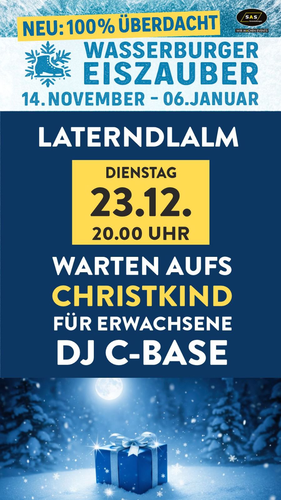 Es weihnachtet schon sehr in der Wasserburger Altstadt. Einen Tag vor Heiligabend ist heute nochmal einiges geboten. Der Christkindlmarkt öffnet zum letzten Mal für heuer seine Tore und abends ist nochmals „Wasserburg leuchtet“ angesagt. In der Laterndlalm am Gries, die übrigens noch bis 6. Januar geöffnet ist, gibt es heute ein spezielles Weihnachtsprogramm für Erwachsene: Warten aufs Christkind mit DJ C-Base (Wasti Schäch) ab 20 Uhr. Bereits ab 19 Uhr treten in der Alm „Paula und Linda“ mit einem etwas besinnlicherem Programm auf.