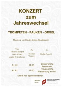 Die Kombination aus festlichem Trompetenglanz, kraftvoller Pauke und der majestätischen Klangfülle der Orgel verspricht ein eindrucksvolles Hörerlebnis, das die Besucher mit barocker Pracht und Tiefe in das neue Jahr begleitet.