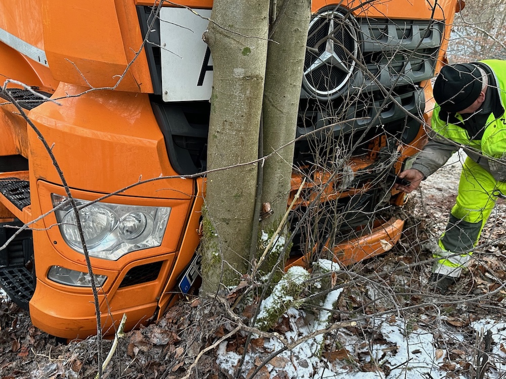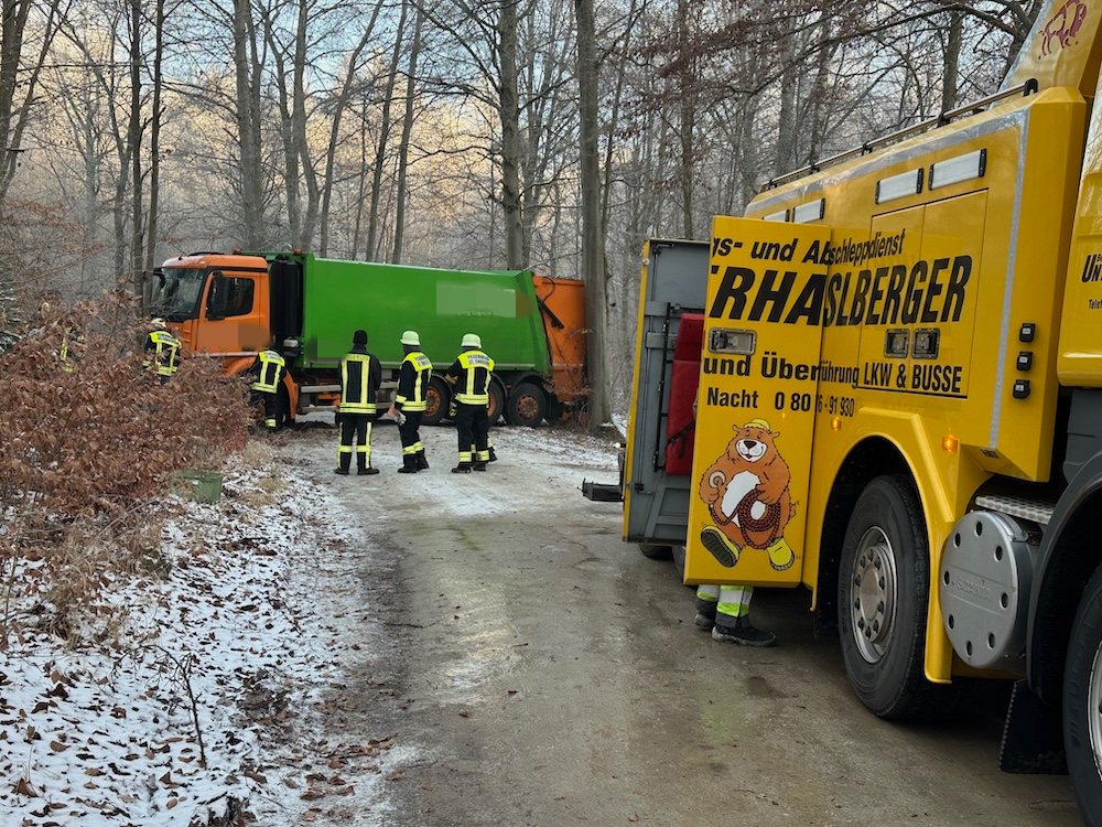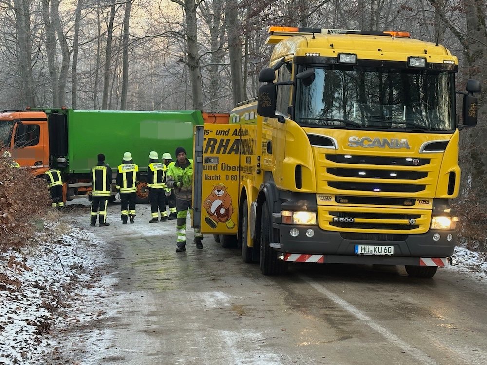 Lkw kommt am Vormittag beim Weiler Schützen von der Straße ab - Schwierige Bergung