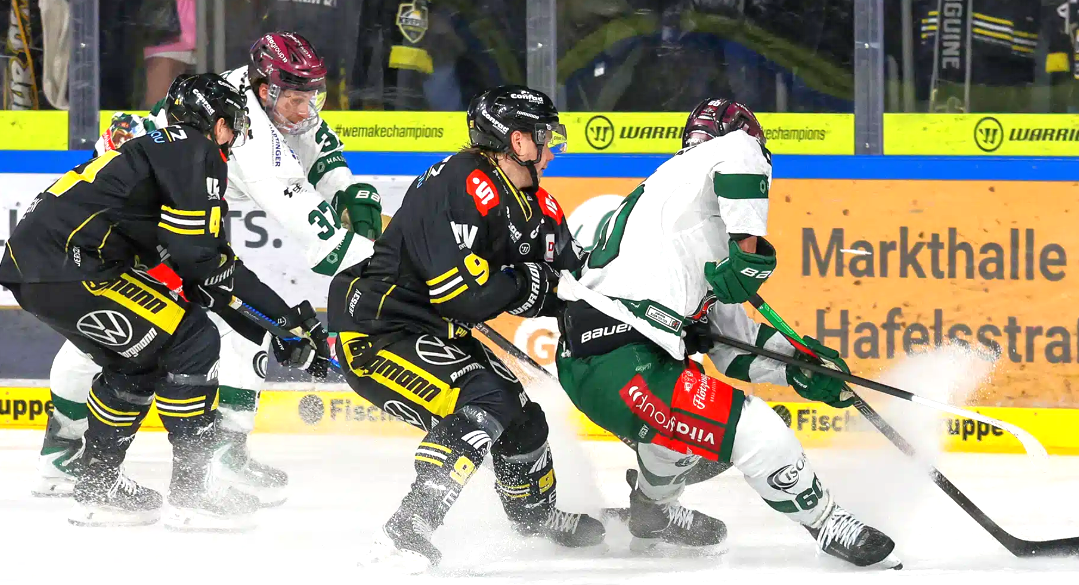 Doch die Grün-Weißen packten den Stier bei den Hörnern – oder besser gesagt die Pinguine am Frack – und drehten die Partie innerhalb zwei Minuten. Und was Shane Hanna, Lewis Zerter-Gossage und Teemu Pulkkinen dabei aufs Eis zauberten, war richtig großes Kino. Hanna und Pulkkinen arbeitete Daniel Bruch und Roope Mäkitalo an der Bande an der eigenen Grundlinie den Puck weg. Pulkkinen spielte den idealen Pass, Zerter-Gossage nahm ihn auf, lief über links durch und legte per Rückhand quer an den Torraum, wo der durchgesprintete Hanna, erfolglos verfolgt von Mäkitalo, mit dem langen Schläger über den Schoner von Torwart Bick zum 2:2 einnetzte (35.).