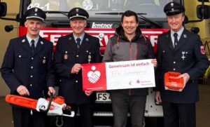 Die Sparkasse Wasserburg setzt ihr regionales Engagement fort und unterstützte die Feuerwehr Schnaupping mit einer Spende in Höhe von 1.000 Euro. Mit dem Betrag konnte eine neue Motorsäge für den Einsatzdienst angeschafft werden.