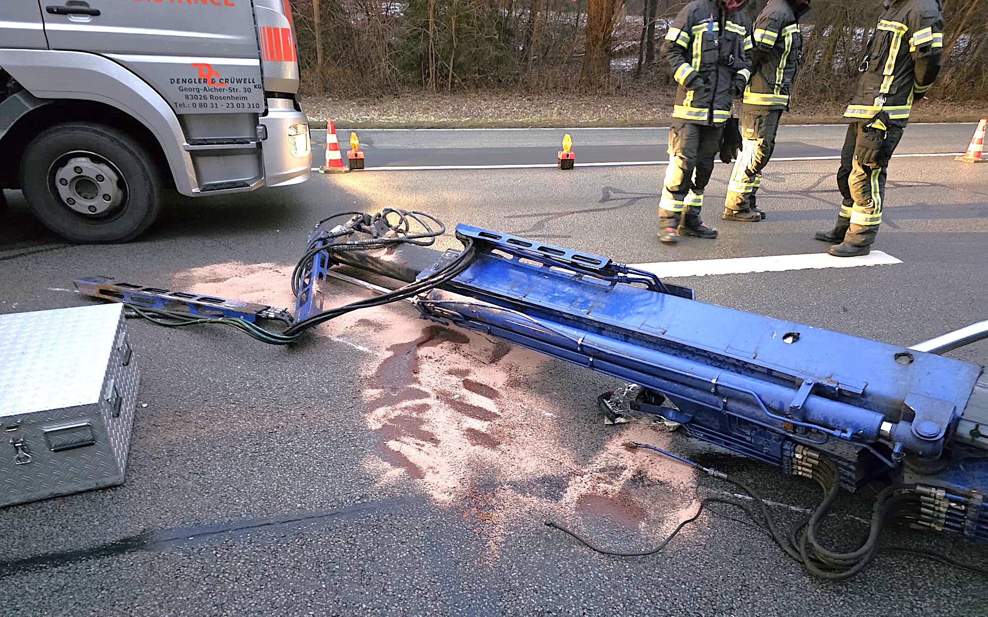 Aufgrund des Verkehrsunfalls kam es zu größeren Verkehrsbehinderungen und die alarmierte Rosenheimer Feuerwehr unterstütze bei Reinigung der Fahrbahn, Bindung des Hydrauliköls sowie Verkehrslenkungs-Maßnahmen.
