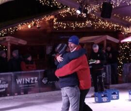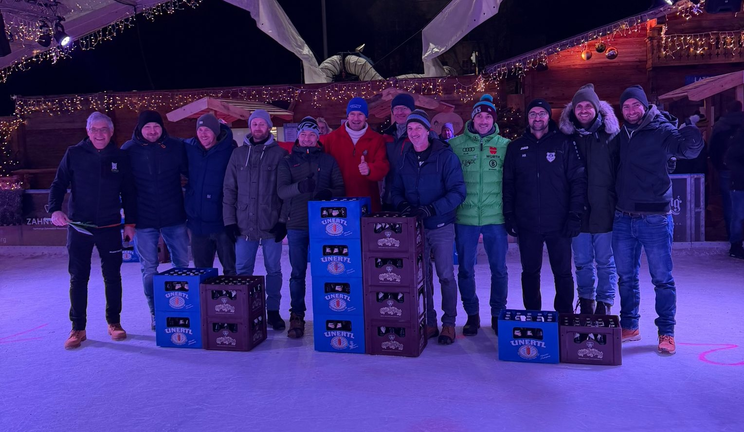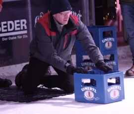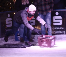 Sie ist alle Jahre einer der gesellschaftlichen und sportlichen Höhepunkte beim Eiszauber in Wasserburg: Die Meisterschaft im Bierkasten-Curling. Der Spaß darf dabei natürlich nicht zu kurz kommen. Und so war auch am gestrigen Samstag die Stimmung bis in den späten Abend hinein wieder bestens. Turnierleiter und Moderator war wie alle Jahre Herbert Zeilinger aus Haag. Als Sieger ging heuer die „Tschug-Bar“ aus Edling hervor, die sich im Finale gegen das Team „Lass-Lappen“ durchsetzte. Im Spiel um Platz drei siegte die AH des DJK-SV Edling gegen die „Gummibärenbande“. Aufgrund der großen Anzahl an Anmeldungen gibt’s am Montag nochmal ein Bierkasten-Curling mit über 20 Teams. Unser Fotograf Stefan Bodmeier war gestern mit von der Partie: