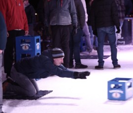 Am gestrigen Samstag jede Menge Spaß beim Bierkasten-Curling in der Eislauf-Arena - Morgen zweiter Teil