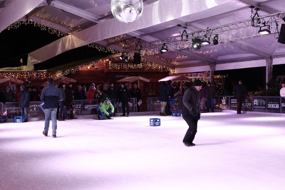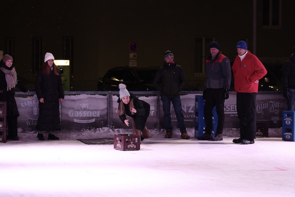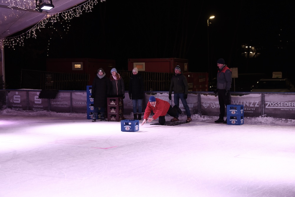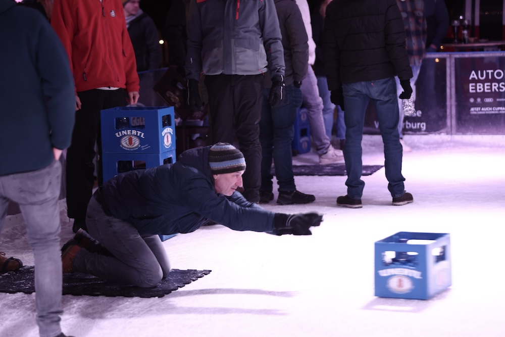 Am gestrigen Samstag jede Menge Spaß beim Bierkasten-Curling in der Eislauf-Arena - Morgen zweiter Teil