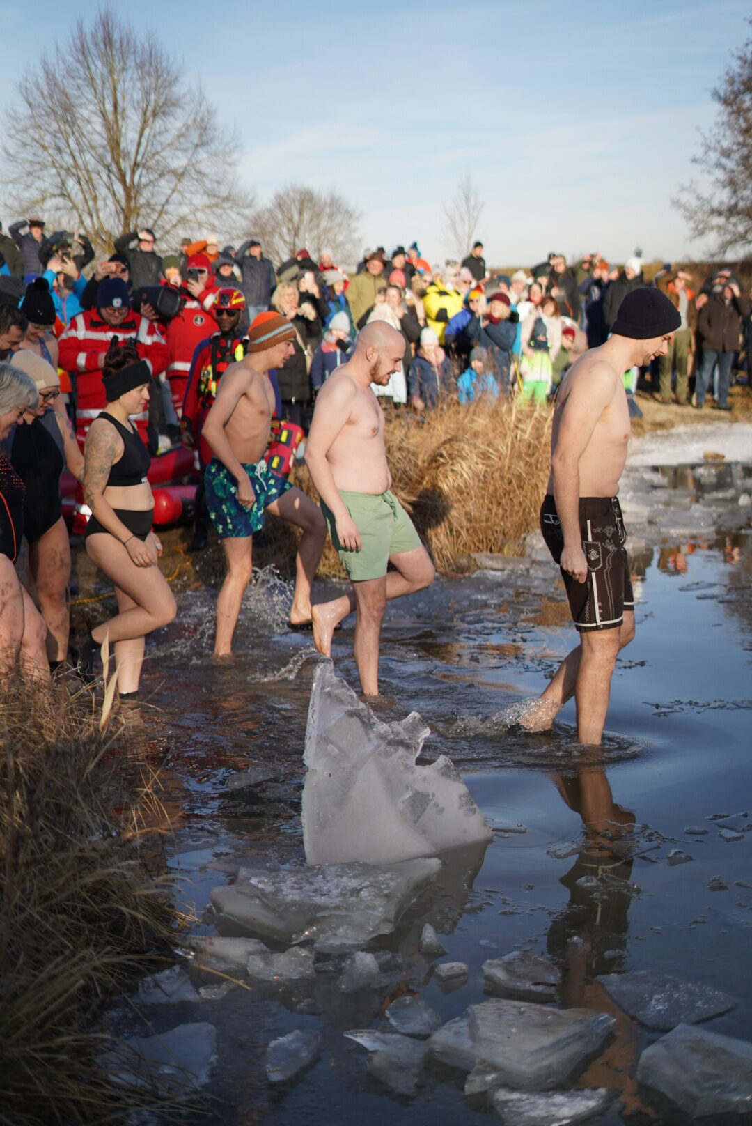 Ein rundum gelungenes Ereignis – darin waren sich Eisschwimmer, Zuschauer und Wasserwachtler gleichermaßen einig. Den gemütlichen Ausklang fand die Veranstaltung beim geselligen Beisammensein mit wärmenden Feuerschalen sowie bei heißem Kinderpunsch, Glühwein und herzhaften Bratwurst- und Steaksemmeln.
