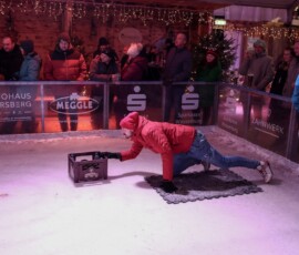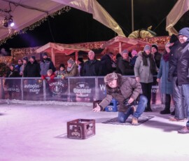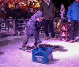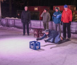 Eisige Temperaturen, aber beste Stimmung: Auch beim zweiten Wettbewerb im Bierkasten-Curling auf der Sparkassen-Eislaufarena in Wasserburg war gestern wieder für viel Spaß und Spannung gesorgt. Wie immer leitete und moderierte Herbert Zeilinger aus Haag das Turnier, an dem über 20 Teams teilnahmen. Als Sieger ging im Finale der „Fuaßboikeller“ gegen die Mannschaft „Eis am Stiel“ hervor. Dritter wurden die SAS-Veteranen vor dem Team „Frosthopfen“. Unser Fotograf Stefan Bodmeier war wie immer mit dabei: