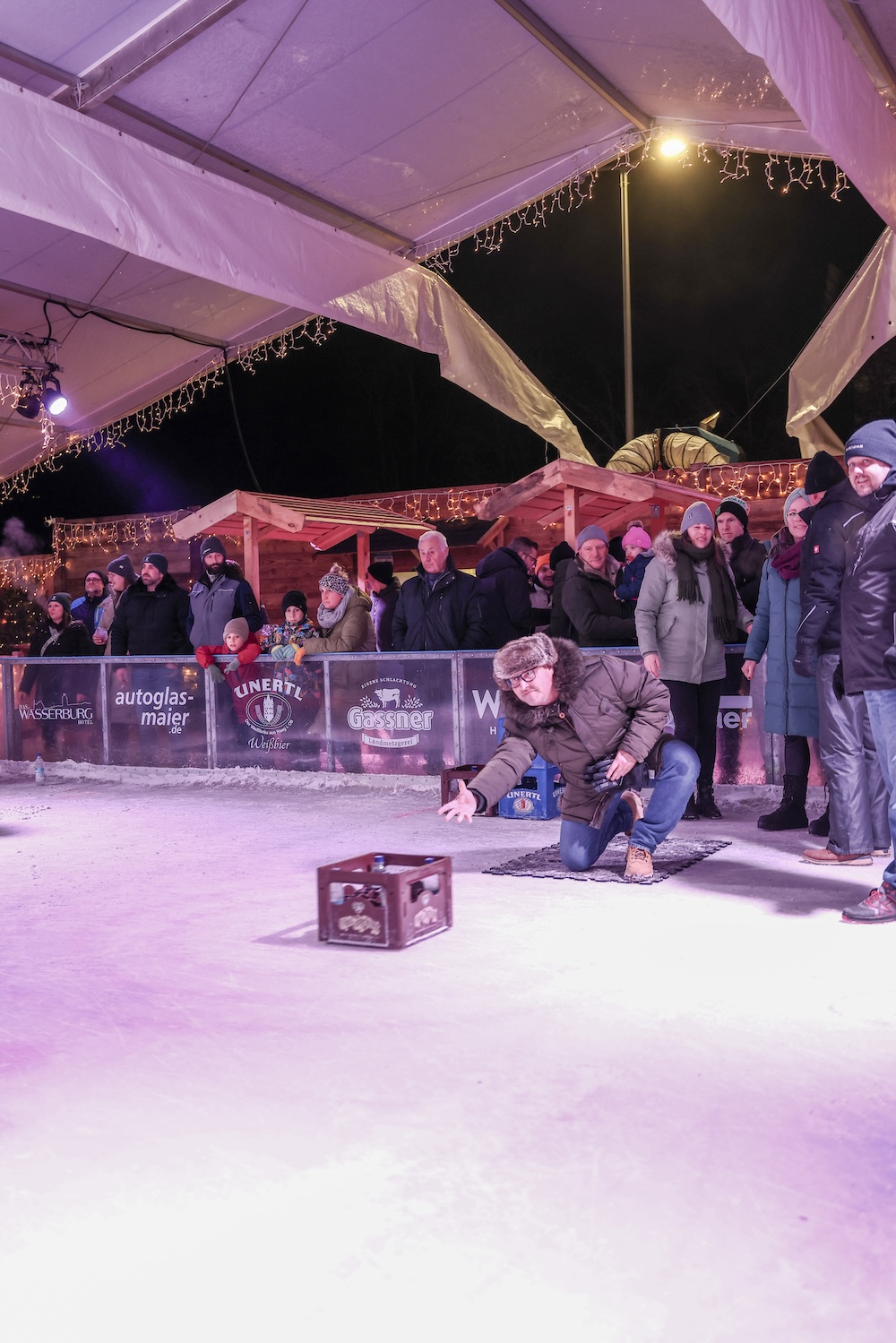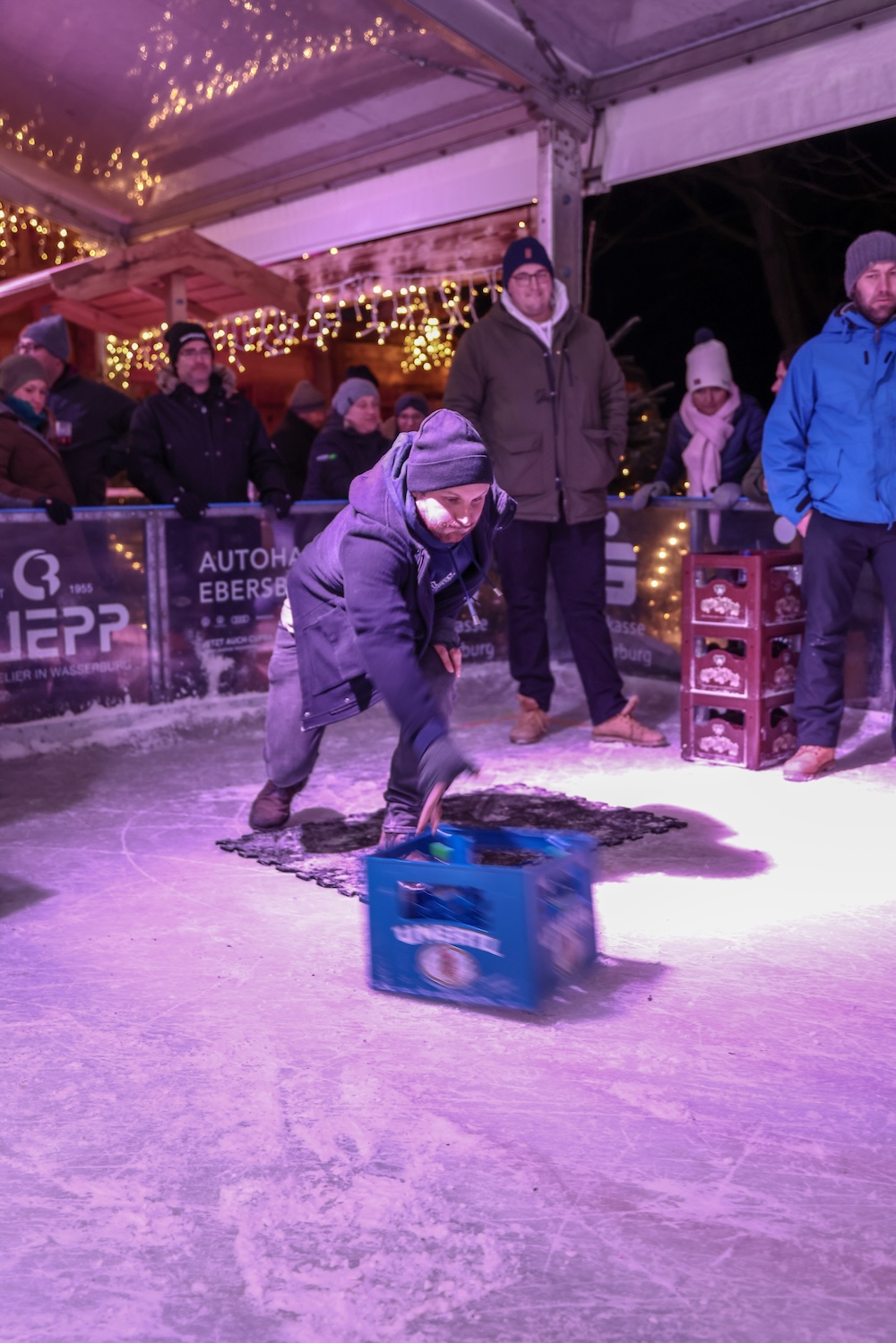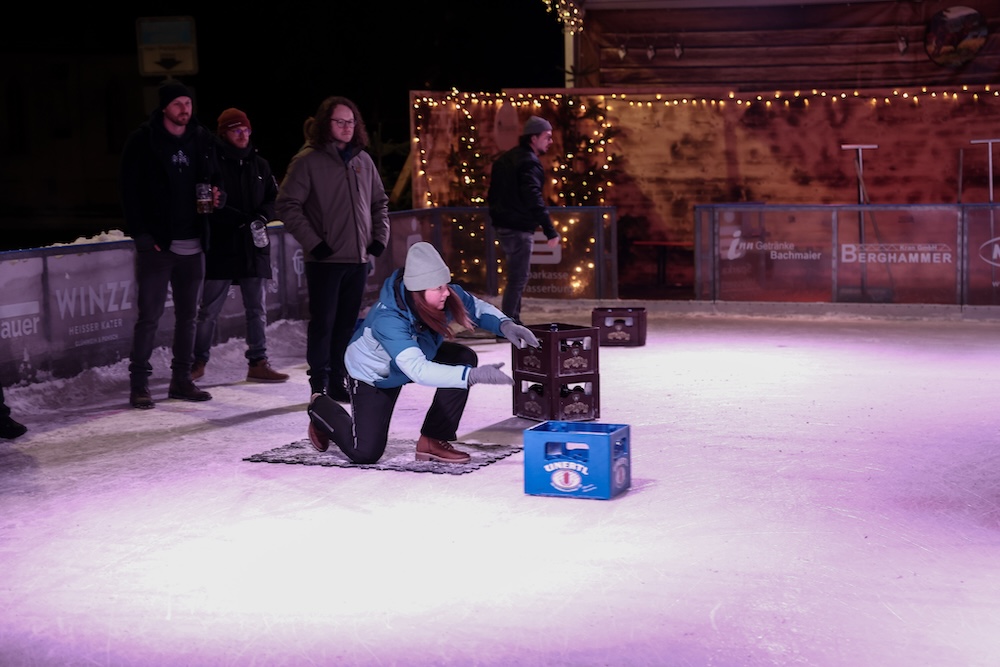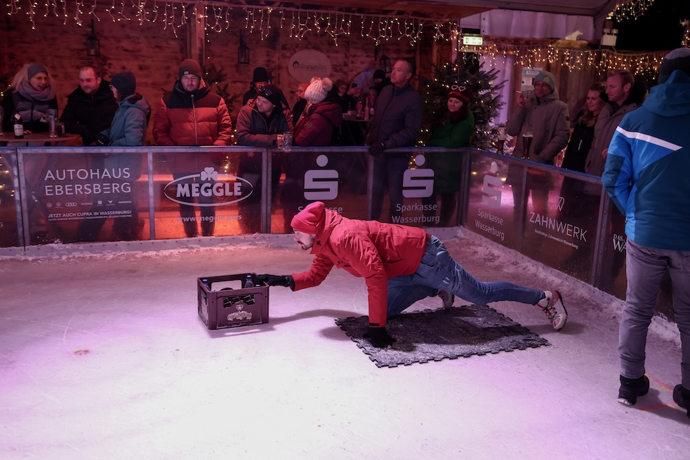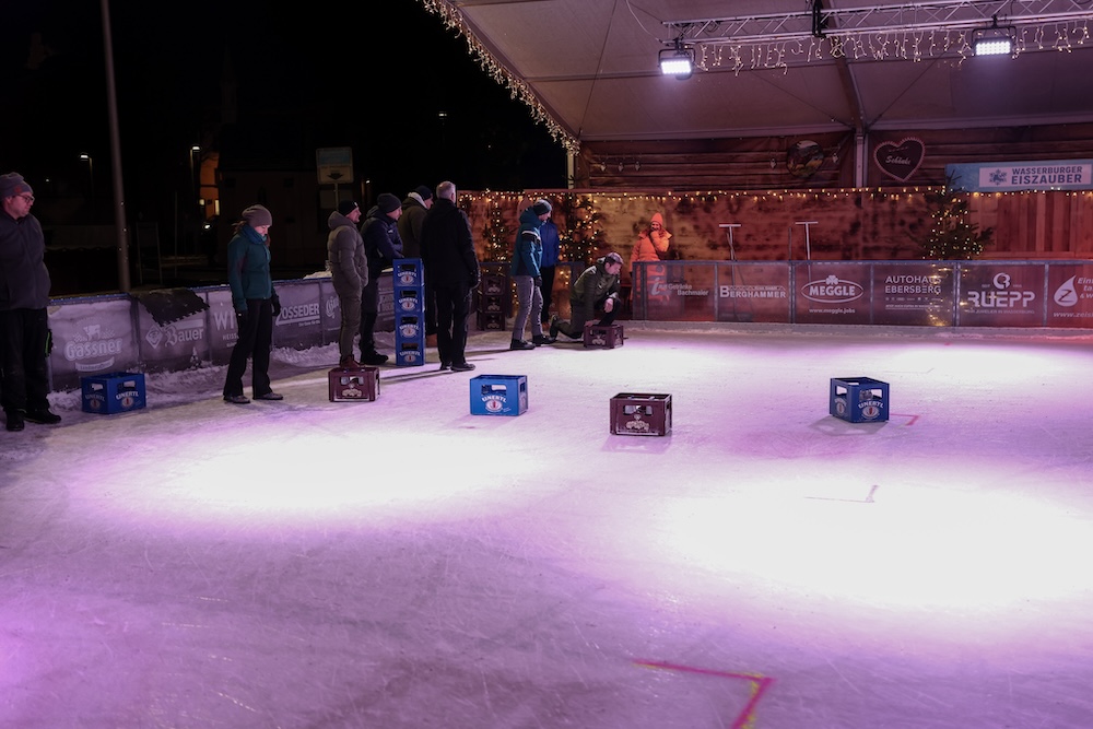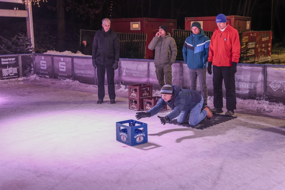 Eisige Temperaturen, aber beste Stimmung: Auch beim zweiten Wettbewerb im Bierkasten-Curling auf der Sparkassen-Eislaufarena in Wasserburg war gestern wieder für viel Spaß und Spannung gesorgt. Wie immer leitete und moderierte Herbert Zeilinger aus Haag das Turnier, an dem über 20 Teams teilnahmen. Als Sieger ging im Finale der „Fuaßboikeller“ gegen die Mannschaft „Eis am Stiel“ hervor. Dritter wurden die SAS-Veteranen vor dem Team „Frosthopfen“. Unser Fotograf Stefan Bodmeier war wie immer mit dabei:
