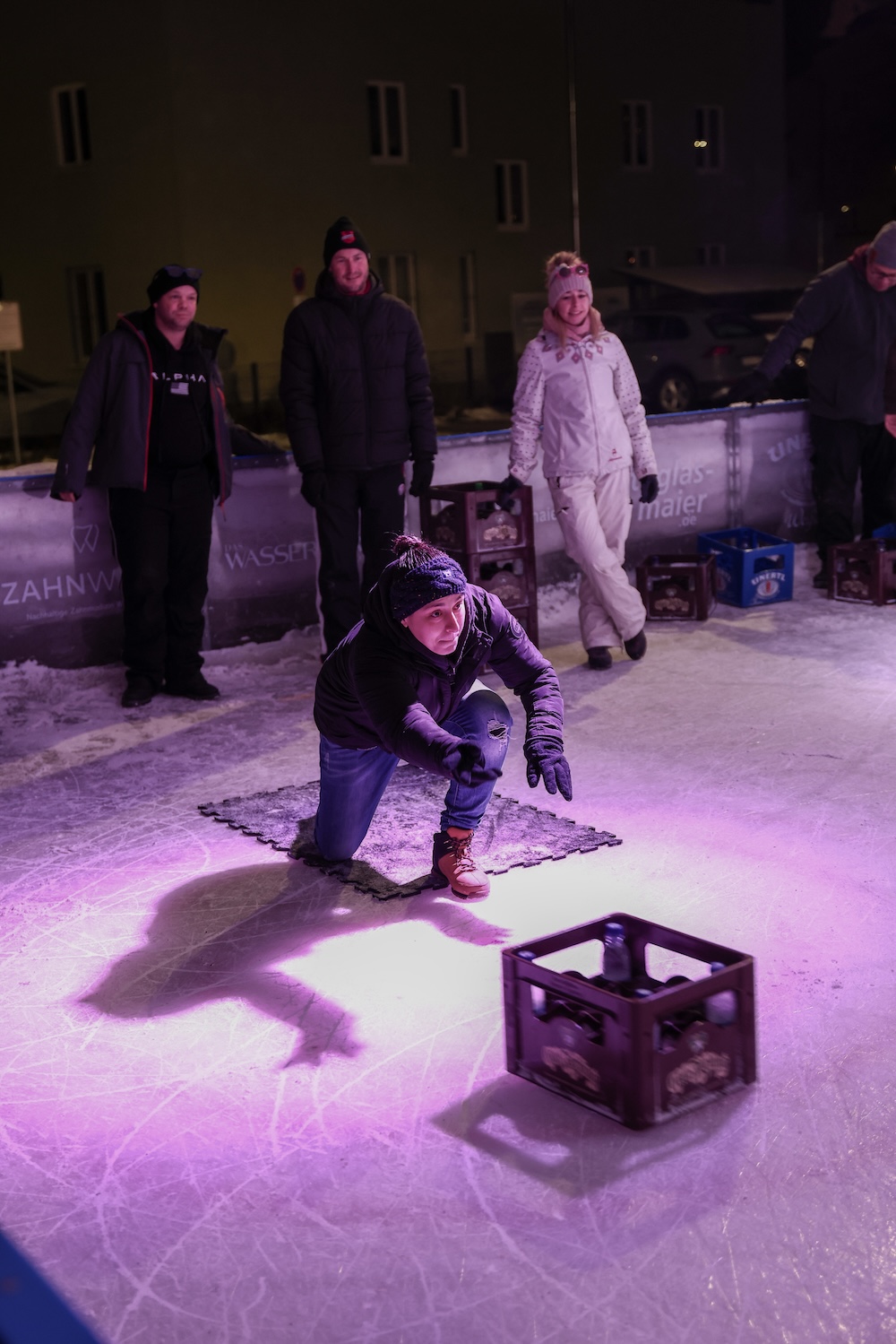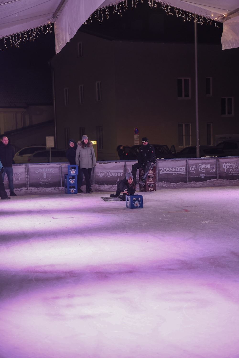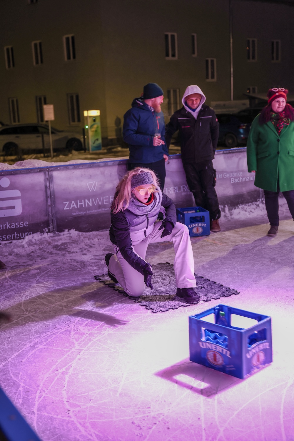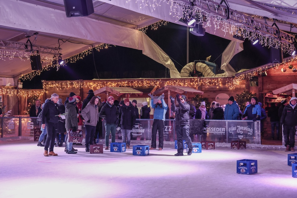 Eisige Temperaturen, aber beste Stimmung: Auch beim zweiten Wettbewerb im Bierkasten-Curling auf der Sparkassen-Eislaufarena in Wasserburg war gestern wieder für viel Spaß und Spannung gesorgt. Wie immer leitete und moderierte Herbert Zeilinger aus Haag das Turnier, an dem über 20 Teams teilnahmen. Als Sieger ging im Finale der „Fuaßboikeller“ gegen die Mannschaft „Eis am Stiel“ hervor. Dritter wurden die SAS-Veteranen vor dem Team „Frosthopfen“. Unser Fotograf Stefan Bodmeier war wie immer mit dabei: