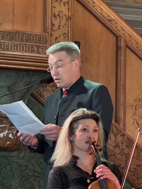 In seiner Begrüßung wies der Landrat des Landkreises Rosenheim, Otto Lederer, darauf hin, dass dieses Konzert zu einem „prachtvollen Saal“, wie es der Wasserburger Rathaussaal nun einmal sei, sehr gut passe. Er bedankte sich bei der Stadt Wasserburg, die dem Landkreis den Saal kostenfrei überlassen hat, ebenso wie bei der Kulturreferentin des Landkreises, Anke Hellmann, für die Organisation dieser Matinée.