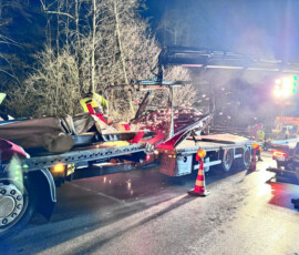 Für die Bergungsarbeiten musste die Straße gesperrt werden. Die Feuerwehr regelte den Verkehr.