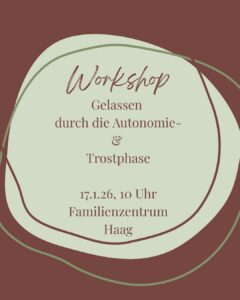 Der bindungsorientierte Elternworkshop „Gelassen durch die Autonomie- und Trostphase“ findet am morgigen Samstag, 17. Januar statt.