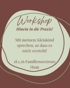 Der Sonntag steht unter dem Motto „Sprechen mit meinem Kleinkind, sodass es mich versteht„. Ein handlungsorientierter Workshop, um bereits erworbenes theoretisches Wissen in die Praxis zu bringen, oder praxisorientiert zu starten.