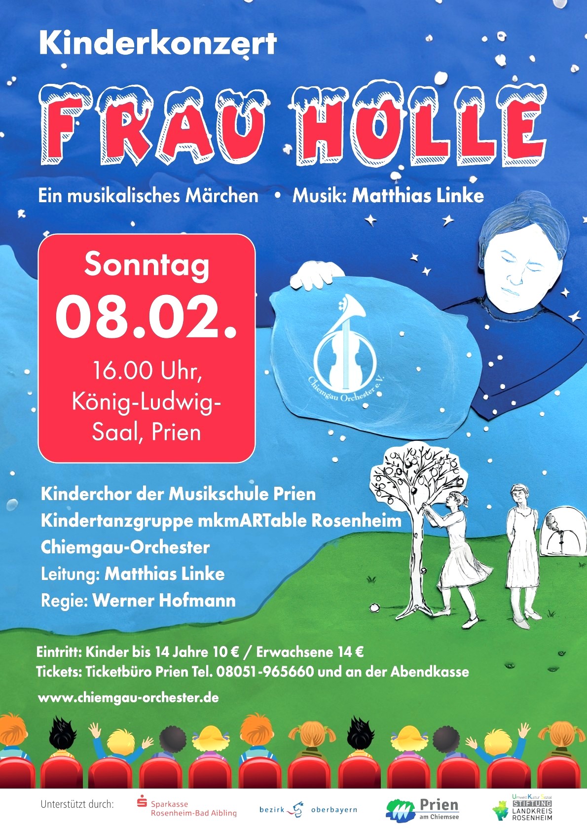 Wie jedes Jahr veranstaltet das Chiemgau-Orchester zum Jahresbeginn wieder ein Kinder-Konzert – zusammen mit dem Kinderchor der Musikschule Prien und dieses Mal auch mit dem Kinder-Tanztheater „mkmARTable“ aus Rosenheim. Auf dem Programm steht ein musikalisches Märchen: „Frau Holle“ nach den Gebrüdern Grimm. Am Sonntag, 8. Februar, ist um 16 Uhr im König-Ludwig-Saal in Prien die Aufführung für die Familien.