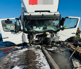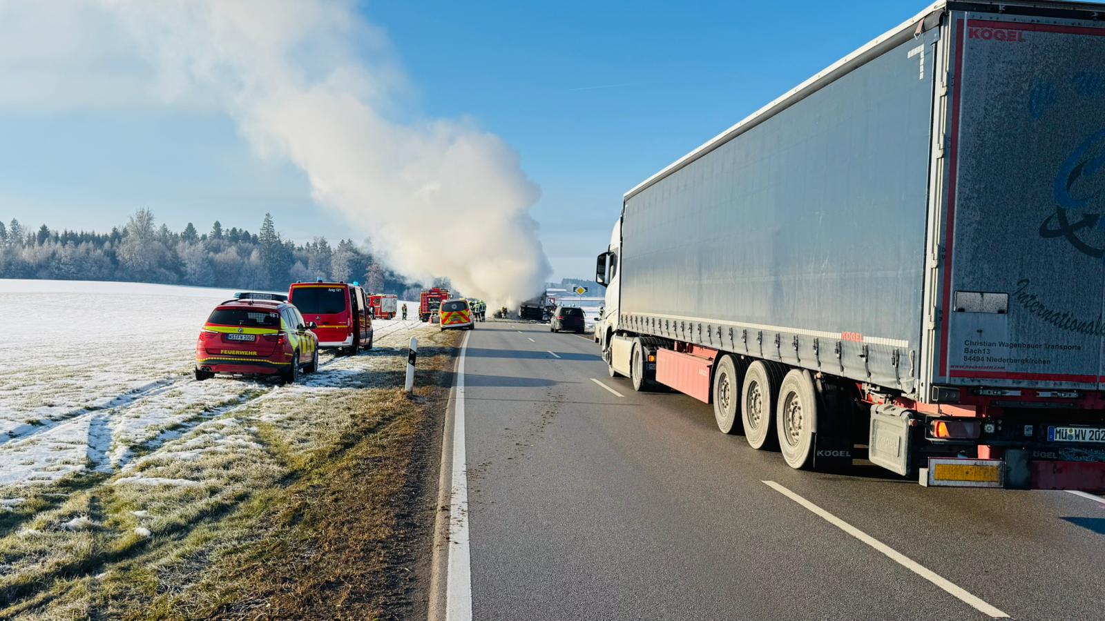 Pkw kracht auf RO35 zwischen Evenhausen und Schonstett in Lkw - Straße immer noch gesperrt