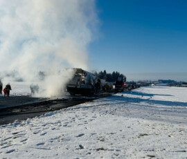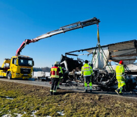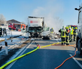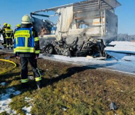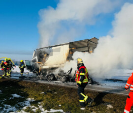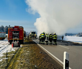 Einsatz für zahlreiche Feuerwehren am Montagvormittag: Die Floriansjünger aus Schonstett, Evenhausen, Amerang, Halfing und Wasserburg rücken gegen 10 Uhr auf die Kreisstraße RO35 aus. Auf Höhe des Weilers Murn hat sich ein schwerer Verkehrsunfall ereignet. Nach ersten Informationen vor Ort ist ein Pkw beim Überholvorgang frontal gegen einen Lkw geprallt. Beide Fahrzeuge sind in Brand geraten. Auch der Rettungsdienst, die Polizei sowie die Kreisbrandrat Richard Schrank und Kreisbrandmeister Michael Mayer sind im Einsatz.