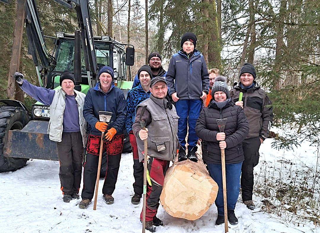 Diese Männer und eine Frau schritten jetzt im Wald zur Tat: Denn in Edling wird es heuer wieder einen neuen Maibaum im Ortszentrum geben. Die Edlinger Vereinsgemeinschaft – alias Sportverein, Feuerwehr und Schützenverein – wird sich im Rahmen des großen Gmoafests 2026 (Ende April, Anfang Mai) in die Schwaiberl stemmen.