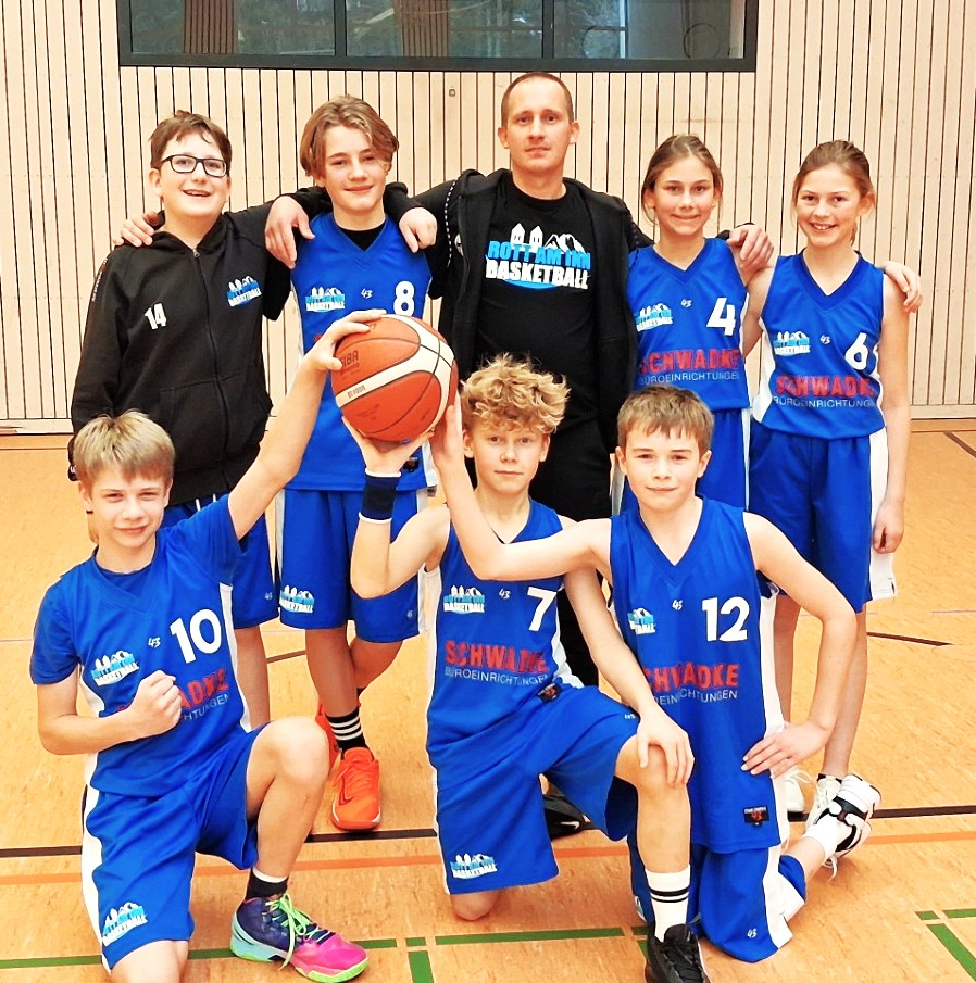 Die Kids versuchen die Tipps vom Coach im letzten Viertel umzusetzen und es klappt: Der Ball geht durch den Ring und das im Minutentakt. Waldkraiburg hat nicht mehr viel entgegenzusetzen und so leuchtet mit der Schlusssirene ein 64:43 für die jungen Rotter von der Anzeigentafel.