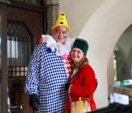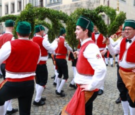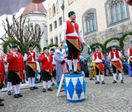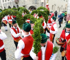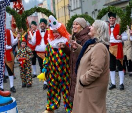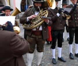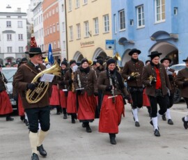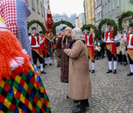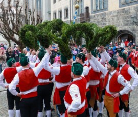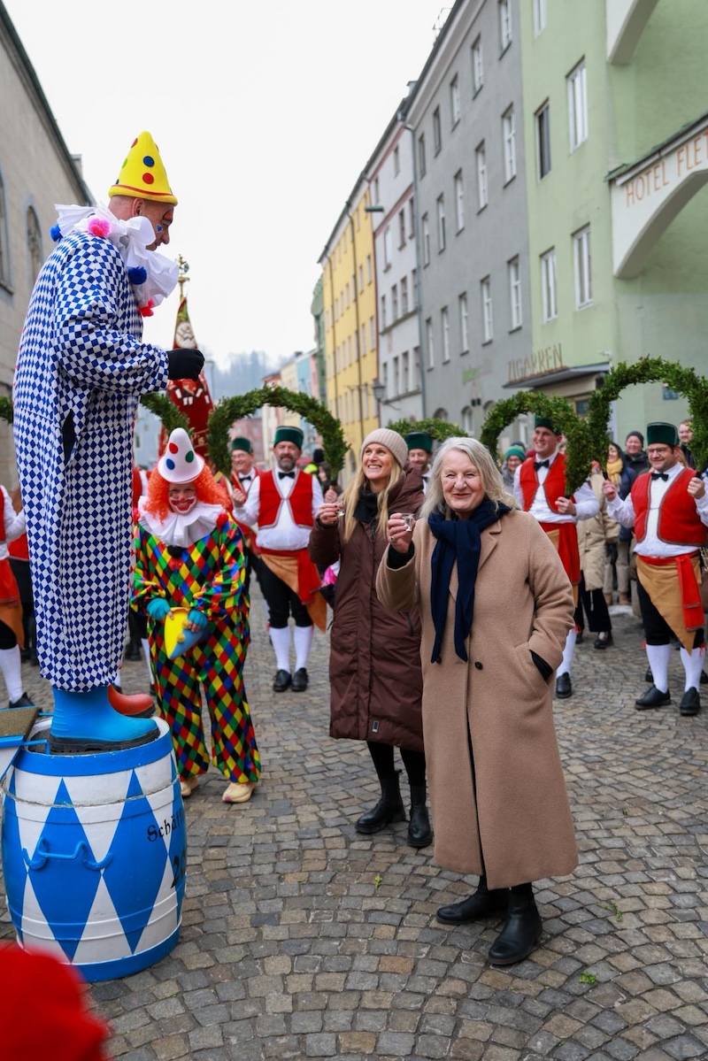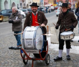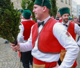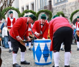 Gestern war großer „Heimspieltag“ für die Wasserburger Schäffler. Gleich mehrere Auftritte standen in der Altstadt auf dem Programm. Darunter auch für die Parfümerie Wierer, deren Chefinnen Annika und Christine Wierer heuer jeweils einen runden Geburtstag feiern können. Und auch ihr Traditionsgeschäft am Marienplatz feiert in diesem Jahr Jubiläum (Bericht folgt). Zu den drei Anlässen kamen die Schäffler gestern am frühen Nachmittag mit zahlreichen Besuchern auf den Marienplatz, worüber sich Annika und Christine sichtlich freuten. Fotos: Sünkel/Bodmeier