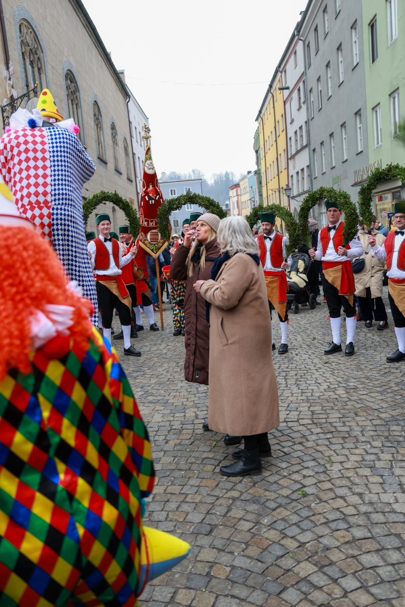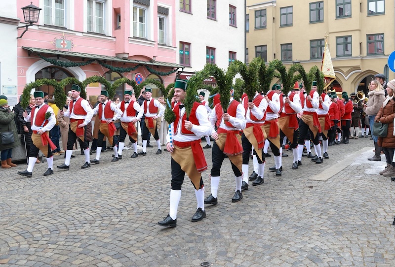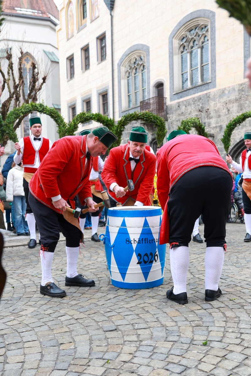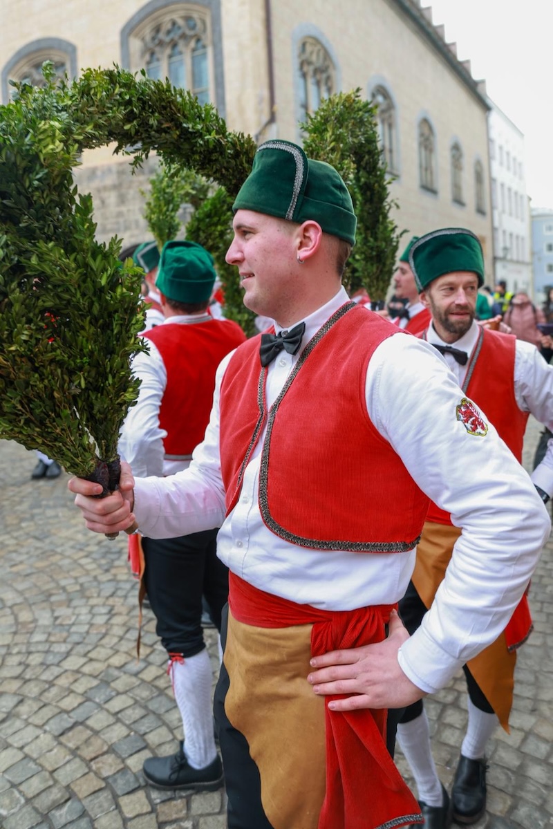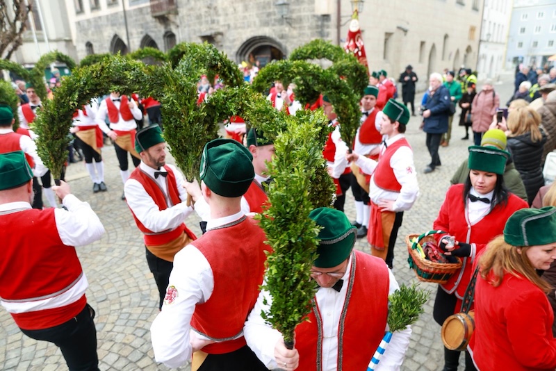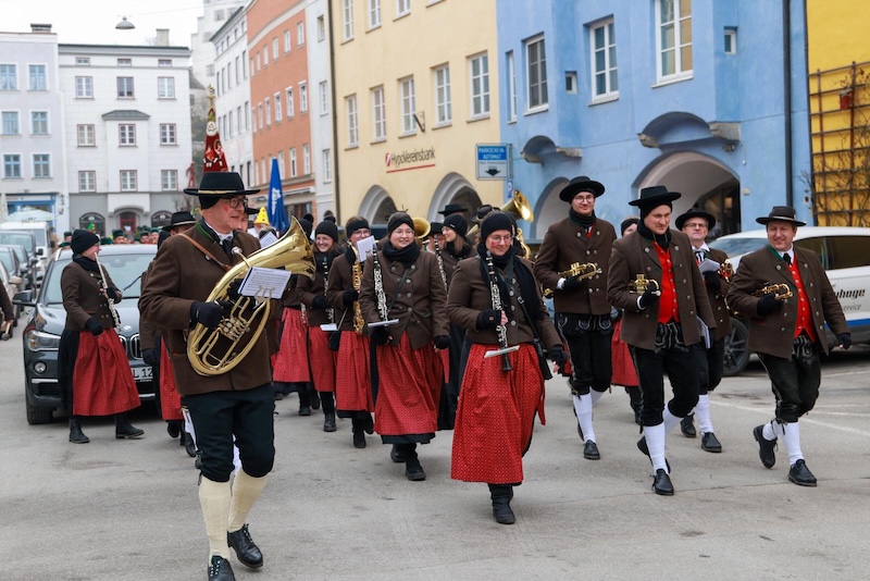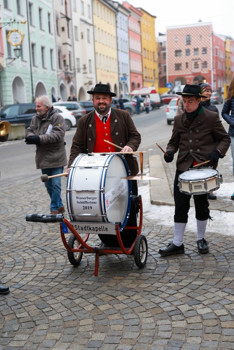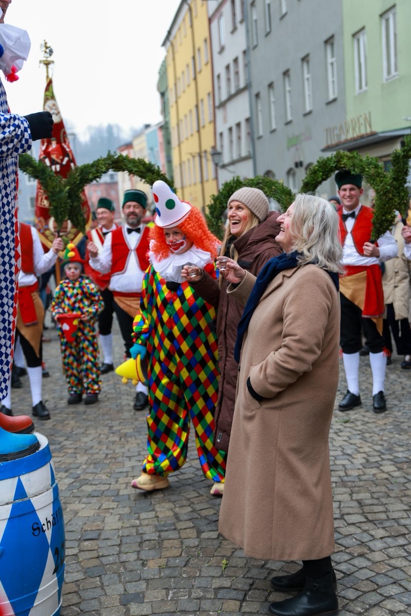 Gestern war großer „Heimspieltag“ für die Wasserburger Schäffler. Gleich mehrere Auftritte standen in der Altstadt auf dem Programm. Darunter auch für die Parfümerie Wierer, deren Chefinnen Annika und Christine Wierer heuer jeweils einen runden Geburtstag feiern können. Und auch ihr Traditionsgeschäft am Marienplatz feiert in diesem Jahr Jubiläum (Bericht folgt). Zu den drei Anlässen kamen die Schäffler gestern am frühen Nachmittag mit zahlreichen Besuchern auf den Marienplatz, worüber sich Annika und Christine sichtlich freuten. Fotos: Sünkel/Bodmeier