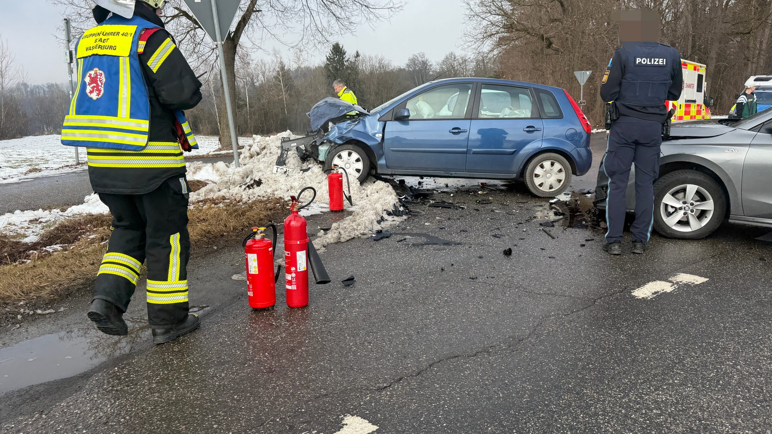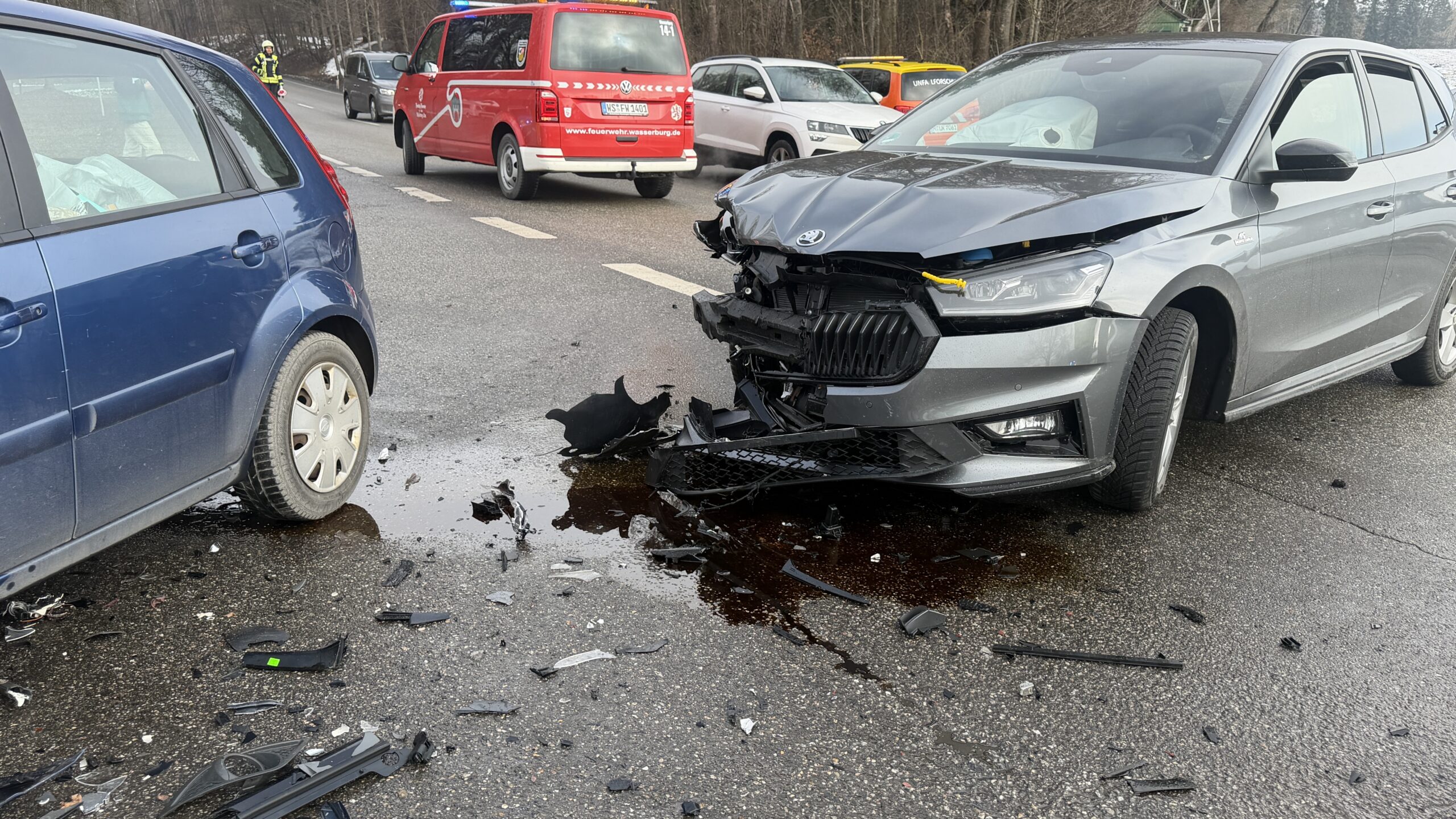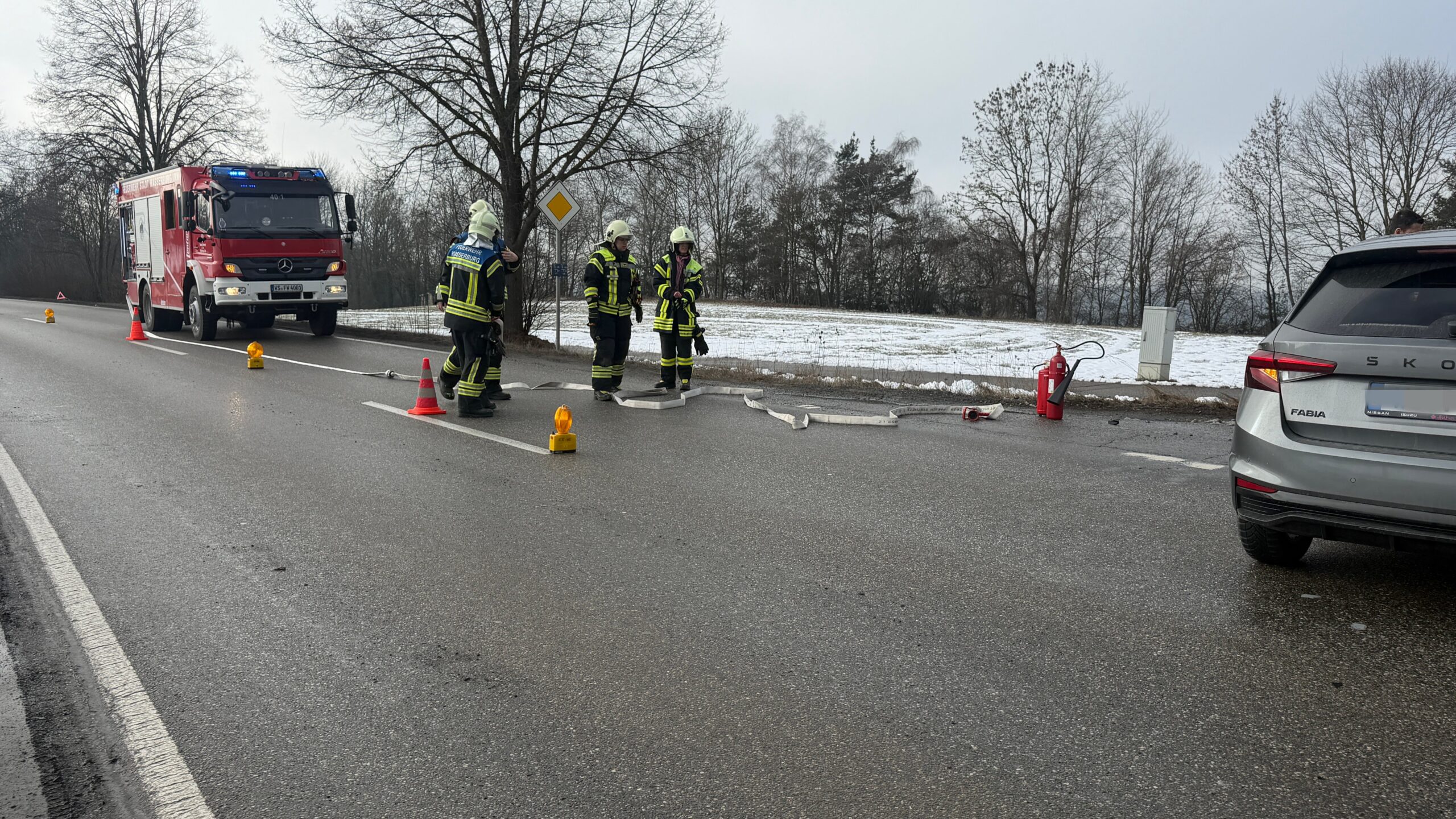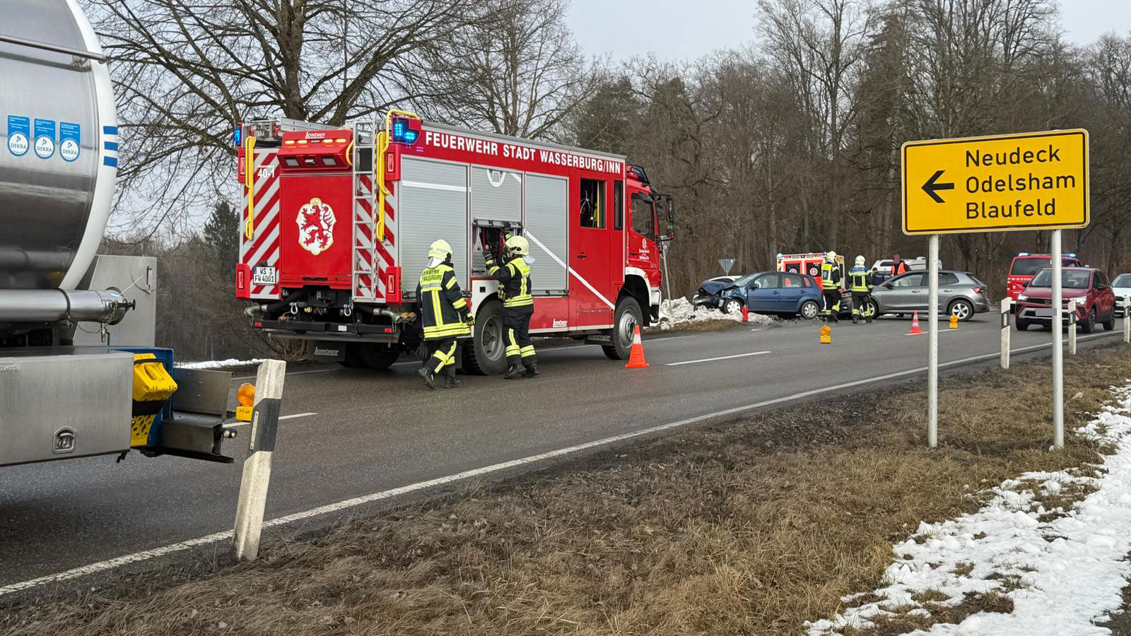 Einsatz für die Feuerwehr Wasserburg am Freitagmittag: Die Floriansjünger rücken gegen 12.30 Uhr auf die Staatsstraße 2092 Richtung Babensham aus. Auf Höhe der Abzweigung nach Neudeck hat sich ein Verkehrsunfall ereignet. Der Rettungsdienst und die Polizei sind ebenfalls im Einsatz. Es gab Verletzte. Die Fahrbahn ist derzeit nur einseitig befahrbar. Die Feuerwehr regelt den Verkehr. Polizeibericht folgt. Foto: WS