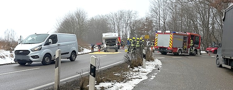 Gegen 12.50 Uhr hatte ein 32-Jähriger – unterwegs mit seinem Wohnmobil – auf der Kesselseestraße zwischen Albaching und Edling einen Paketwagen übersehen. Die 42-jährige Fahrerin hatte ihr Fahrzeug abgebremst, um nach links abzubiegen. Mit der Front prallte das Wohnmobil in das Heck des Kleintransporters.