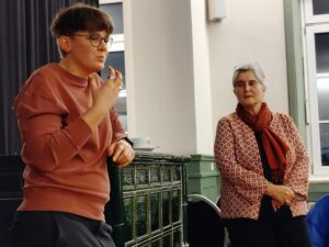 In der folgenden lebhaften Diskussion wurden zusätzliche Aspekte wie beispielhaft die „Wehrpflicht für Frauen“ erörtert. Hier nahmen beide Referentinnen den klaren Standpunkt ein, wonach dies junge Frauen in einer besonders wichtigen Lebensphase und angesichts der extrem ungleichen Verteilung von Care-Arbeit zwischen Mann und Frau deutlich benachteiligen würde. Junge Frauen würden im Durchschnitt ein weit besseres Abitur ablegen, gleichzeitig betrage beispielsweise der Anteil von Professorinnen bescheidene sieben Prozent, Spitzenpositionen seien angesichts frauenspezifischer Auszeiten oft nicht zu erreichen. Die Wehrpflicht für Frauen sei angesichts der Gesamtlage klar abzulehnen, freiwilliger Dienst in der Bundeswehr sei jederzeit auch für Frauen möglich.