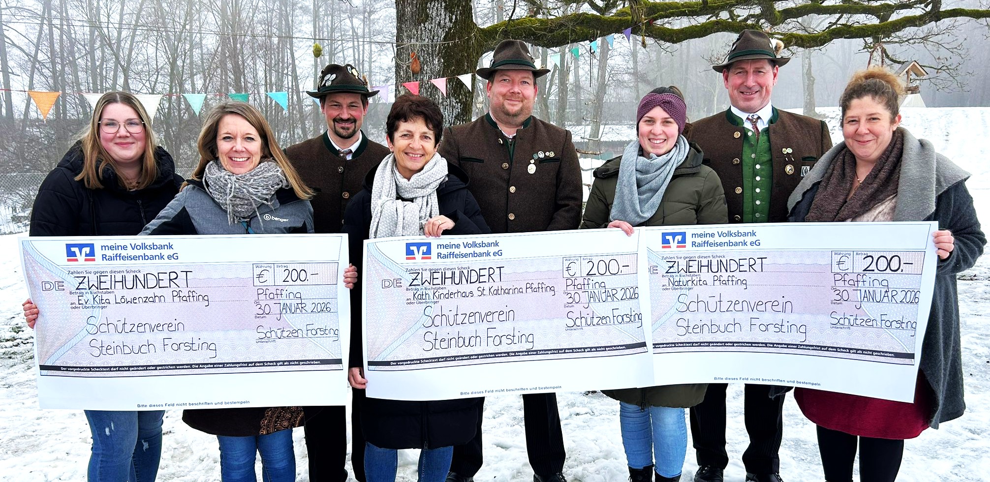 Schöne Geste der Forstinger Steinbuch-Schützen: Sie haben jetzt alle drei Kitas der Gemeinde Pfaffing mit einer Spende in der Höhe von jeweils 200 Euro unterstützt. Anläßlich ihres 101. Jubiläums im vergangenen Jahr hatte der Verein zum Fest anstelle der Gastgeschenke das Geld auf die Seite gelegt – für diese Spendenaktion.