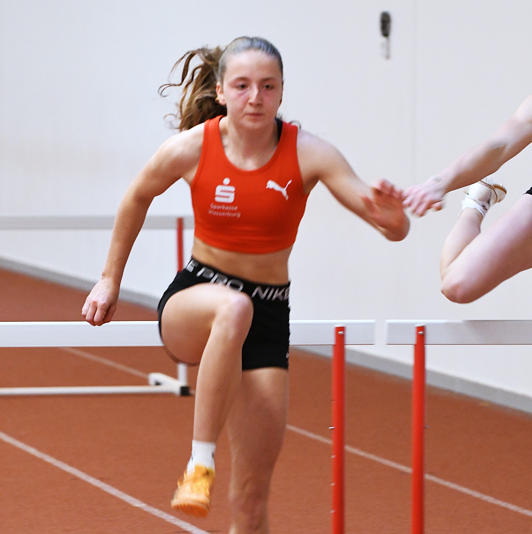 Im selben Hürdenfinale glänzte Laura Dirnecker (Foto), die eigentlich noch der U18 angehört. Bereits im Vorlauf steigerte sie sich von 9,38 s auf starke 9,17 s und zog souverän ins Finale ein. Dort legte sie nochmals nach und lief in 9,00 s zu Bayerns Vizetitel- Gleichzeitig erfüllte sie damit die Norm für die Deutschen Jugend-Hallenmeisterschaften in Sindelfingen. Der Titel ging an die deutsche Spitzenläuferin Daryl Ndasi (Munich Athletics) in 8,47 s.