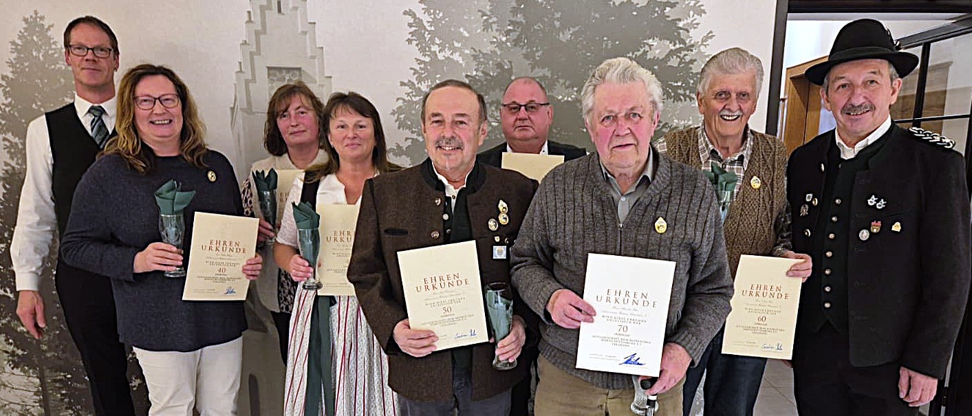 Für ihre jahrzehntelange Treue zum Schützenverein Rettenbach wurden Mitglieder für 40, 50, 60 und sogar 70 Jahre Vereinszugehörigkeit ausgezeichnet.