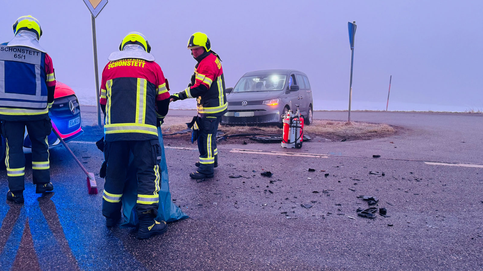 Einsatz für die Feuerwehr Schonstett am Freitagmorgen: Die Floriansjünger rücken gegen 7 Uhr auf die Staatsstraße 2092 Richtung Halfing aus. Auf Höhe des Weiler Rieperting sind an der Kreuzung nach Zillham zwei Pkw zusammengeprallt. Der Rettungsdienst, der Notarzt und die Polizei sind ebenfalls im Einsatz. Beide Fahrer haben sich verletzt. Die Staatsstraße ist derzeit nur einseitig befahrbar. Polizeibericht folgt. Fotos: RB