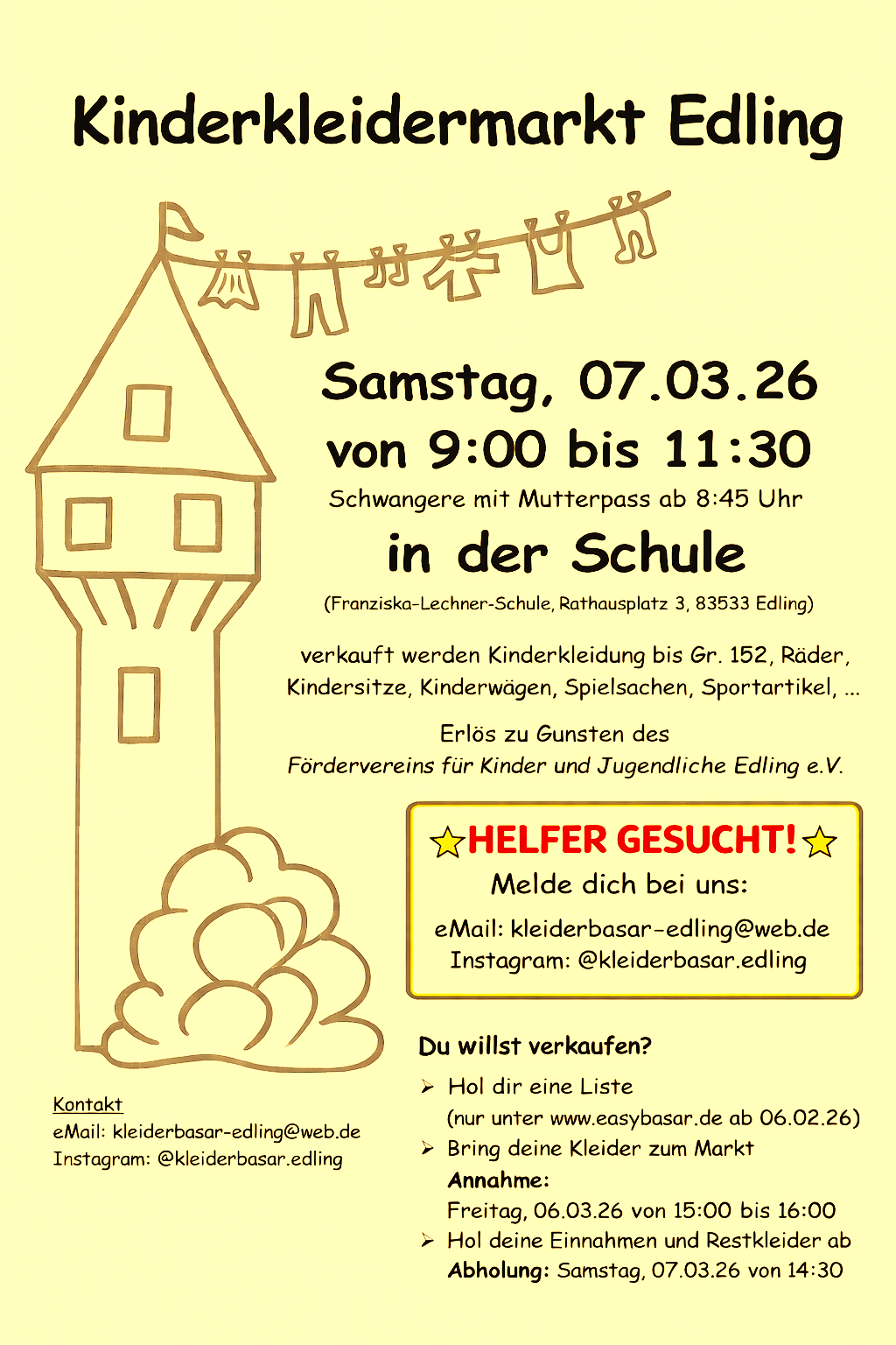 Weitere Informationen gibt es per E-Mail an kleidermarkt-edling@web.de oder auf Instagram.