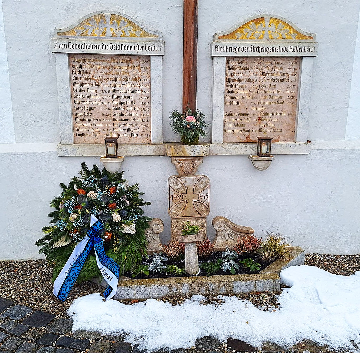 Seine Jahresbilanz zog jetzt die Krieger-und Soldatenkameradschaft Rettenbach-Farrach beim heimischen Neuwirt. Zuvor fand der jährliche Gedächtnis-Gottesdienst statt und Vorstand Michael Betzl legte zum Gedenken an die gefallenen, vermissten und verstorbenen Kameraden – im Beisein aller Fahnenabordnungen der Ortsvereine – dann anschließend feierlich einen Kranz am Kriegerdenkmal nieder (Foto unten).