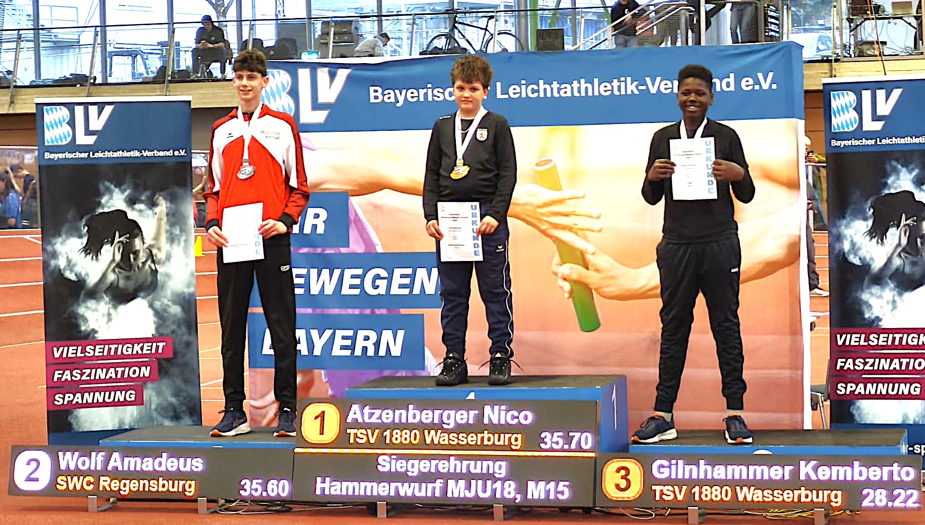 Das Nachwuchstalent zeigte einen starken Wettkampf und steigerte seine persönliche Bestleistung auf 35,70 Meter. Mit diesem Wurf sicherte er sich den Meistertitel – und das denkbar knapp. Am Ende trennten ihn lediglich zehn Zentimeter von Amadeus Wolf vom SWC Regensburg, der sich mit Rang zwei begnügen musste.