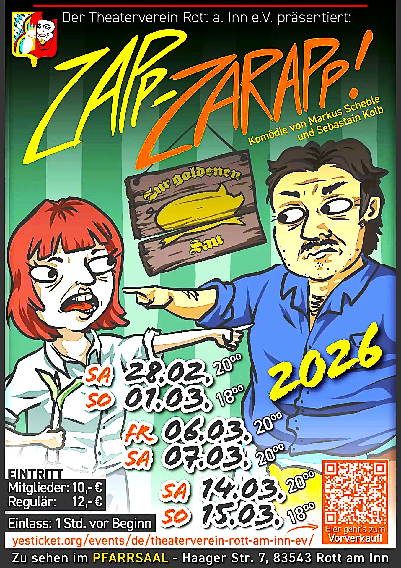 Mit dem Stück „Zapp-Zarapp“, einer Komödie von Markus Scheble und Sebastain Kolb, die teilweise noch im Gemeinde-Sitzungssaal geprobt worden war, wird der Rotter Theaterverein die Bühne nun durch sechs Aufführungen einweihen.