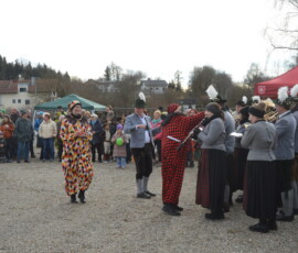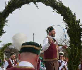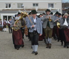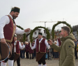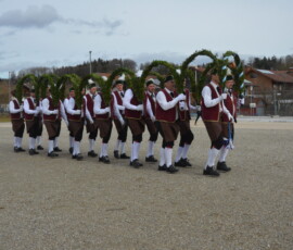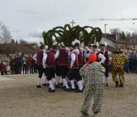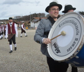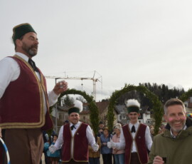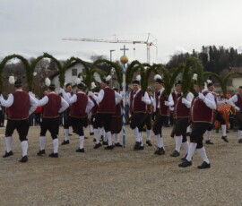 Gute Laune, rote Herzerl und viel gute Laune gabs heute Nachmittag am Soyener Festplatz am Bahnhofsgelände. Die Haager Schäffler tanzten fröhlich, musikalisch unterstützt von der Ramsauer Blaskapelle.