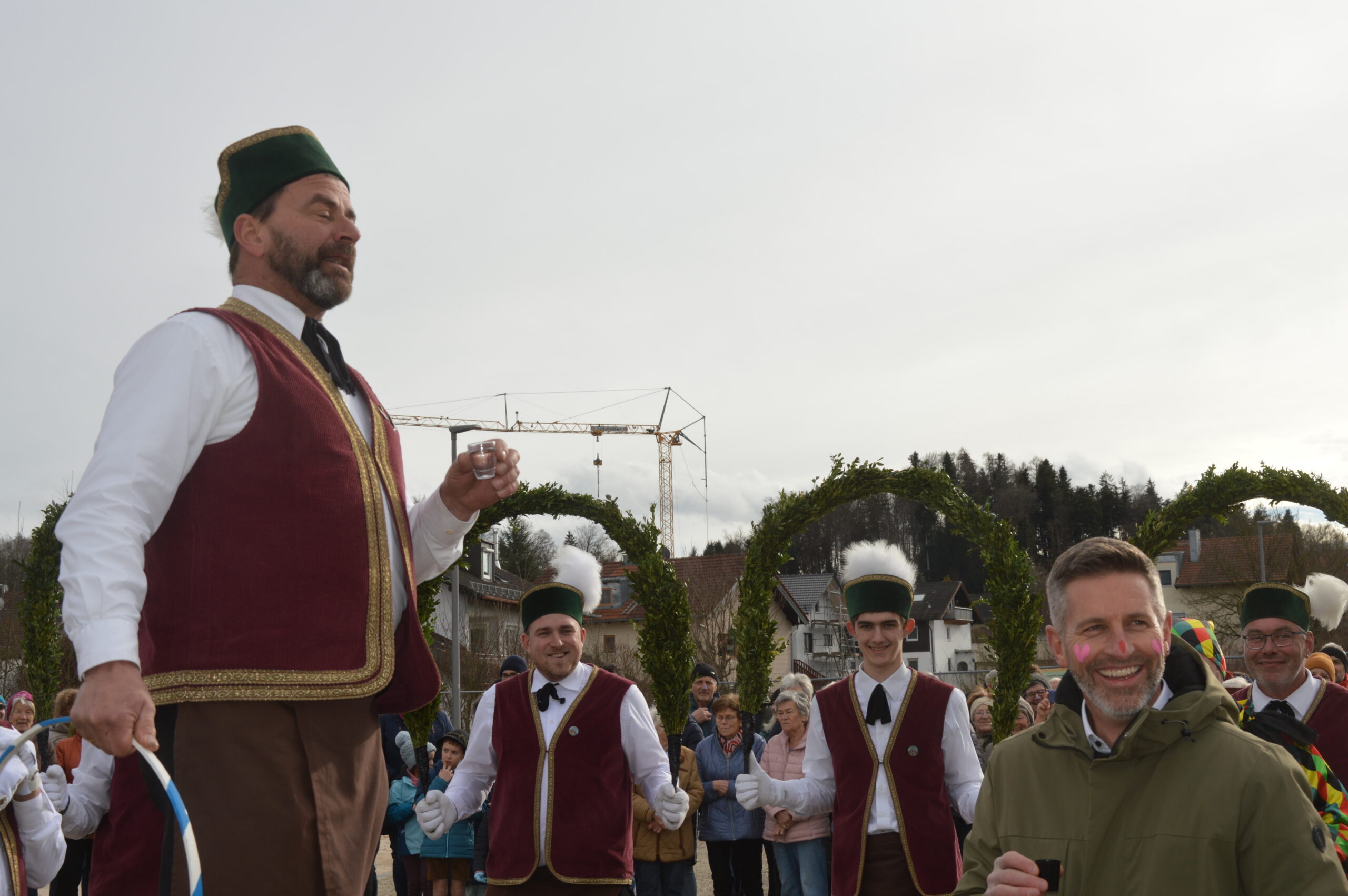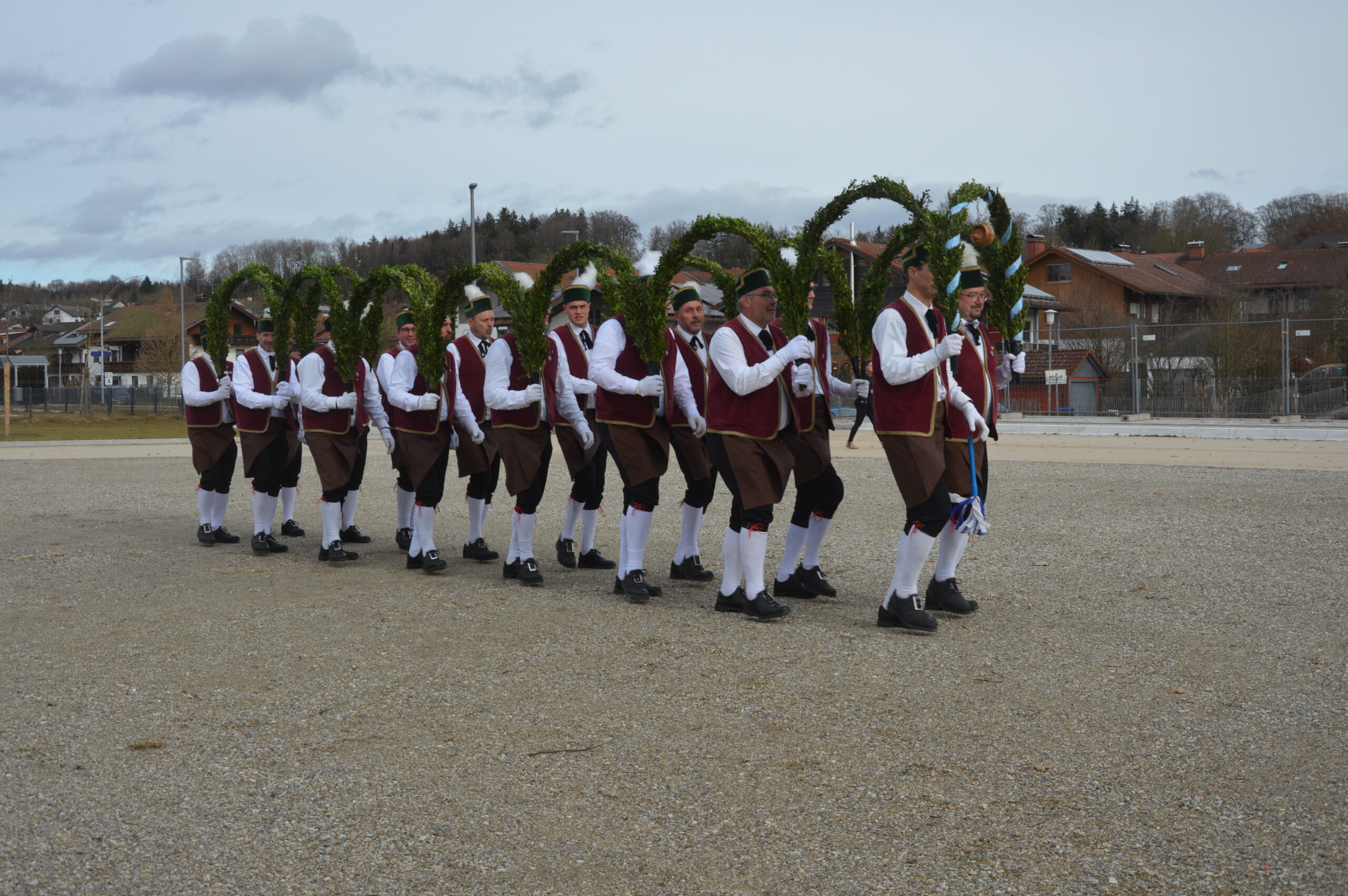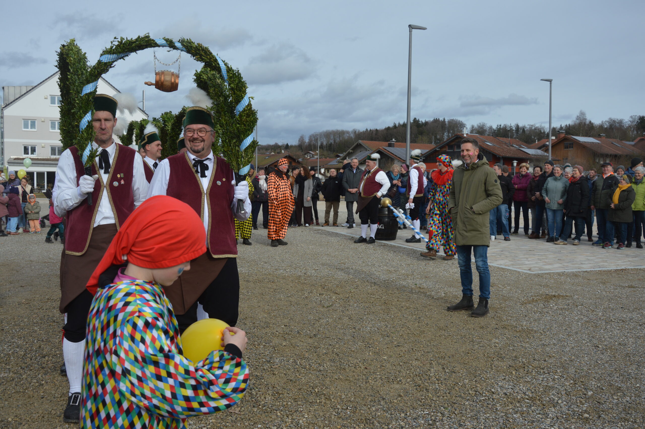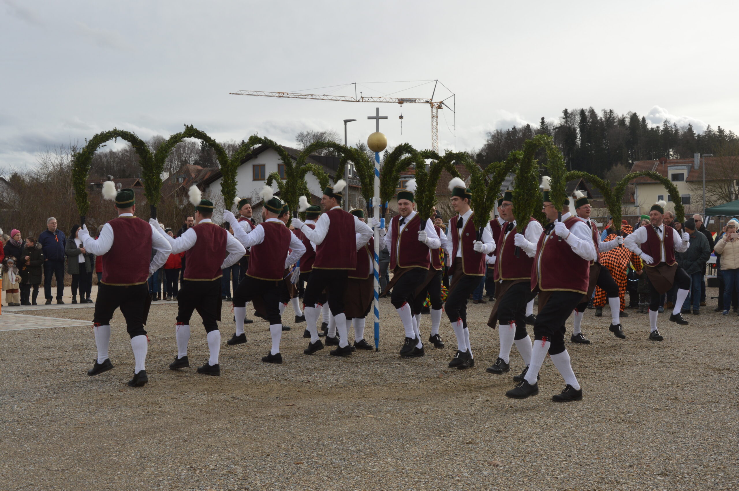 Gute Laune, rote Herzerl und viel gute Laune gabs heute Nachmittag am Soyener Festplatz am Bahnhofsgelände. Die Haager Schäffler tanzten fröhlich, musikalisch unterstützt von der Ramsauer Blaskapelle.