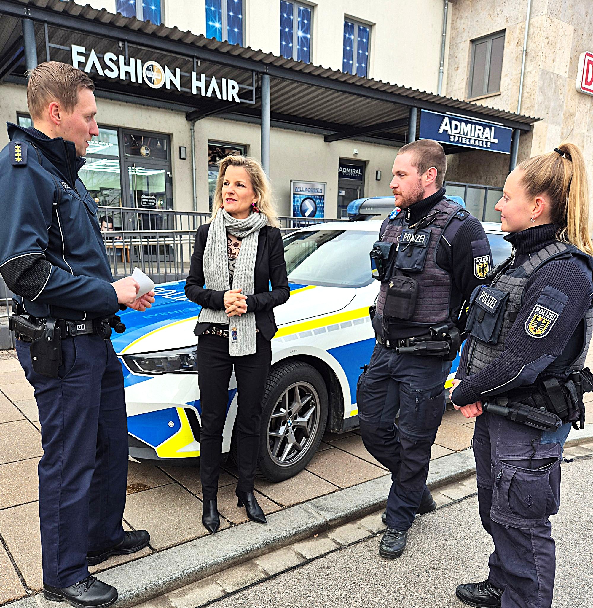 Daniela Ludwig appellierte an Reisende und Geschäftsleute, sich bei Gewalt oder Bedrohung sofort an die Polizei zu wenden: „Die Polizei ist hier am Bahnhof sehr präsent. Zudem gibt es bei der Bundespolizei einen Beauftragten für Kriminalprävention. Er ist der geeignete Ansprechpartner für die Geschäftsleute.“