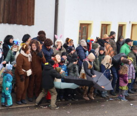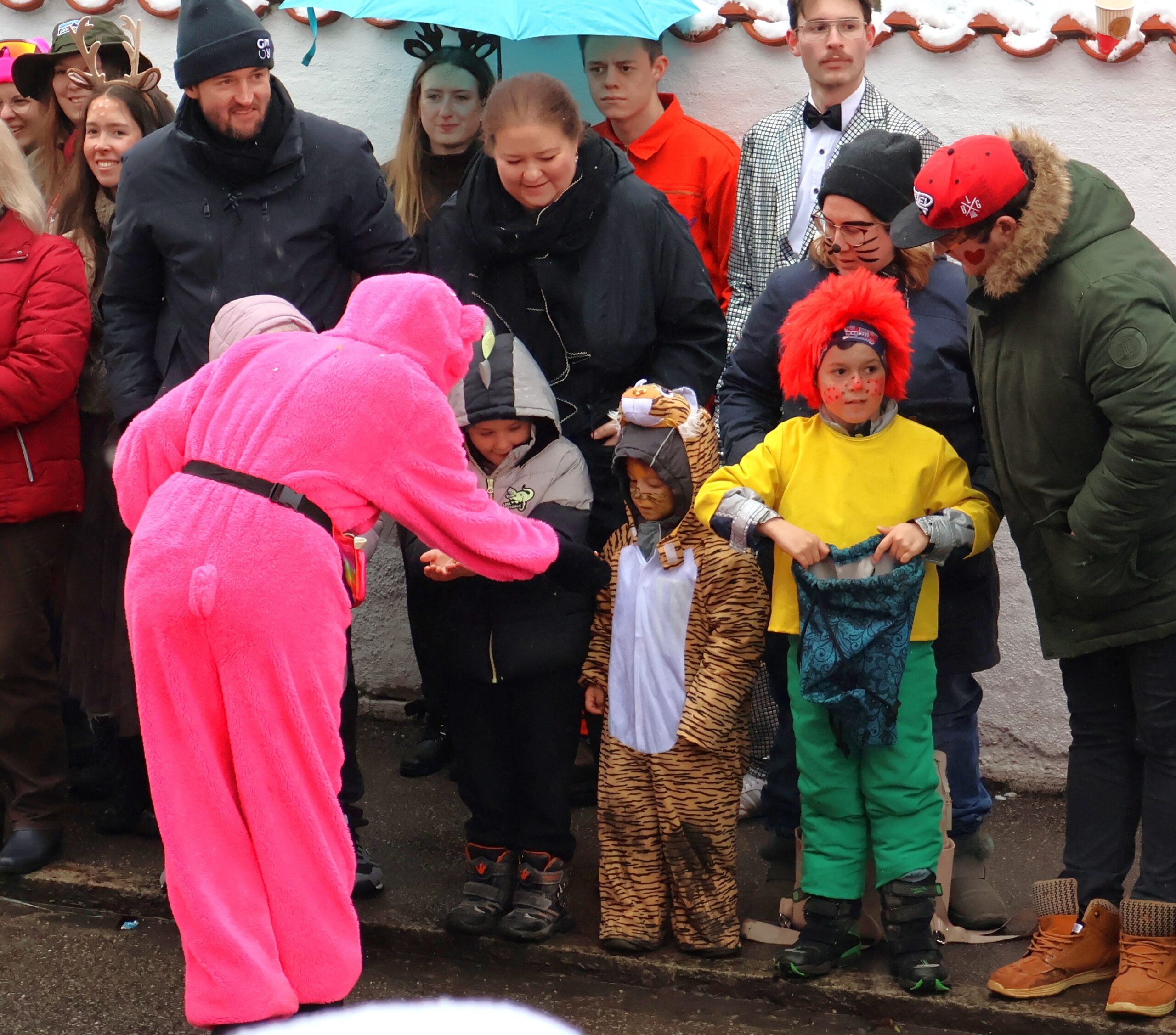 Auch wenn das Wetter nicht so ganz mitspielte: Tausende von Besuchern kamen. Und viele konnten sich gar nicht mehr erinnern, wann es zuletzt einen Faschingszug in Edling bei Schnee gegeben hatte. Schee war des irgendwia. Winter hoid und gar ned koid: Tanzen und hüpfen war ogsagt, aufm Wagen, daneben, davor – egal. Saubane Masken, guade Liadln und Guadln üba Guadln – vom Traubenzucker über Brausepulver-Tüten, Popcorn-Packungen bis zu de Gummibärle …