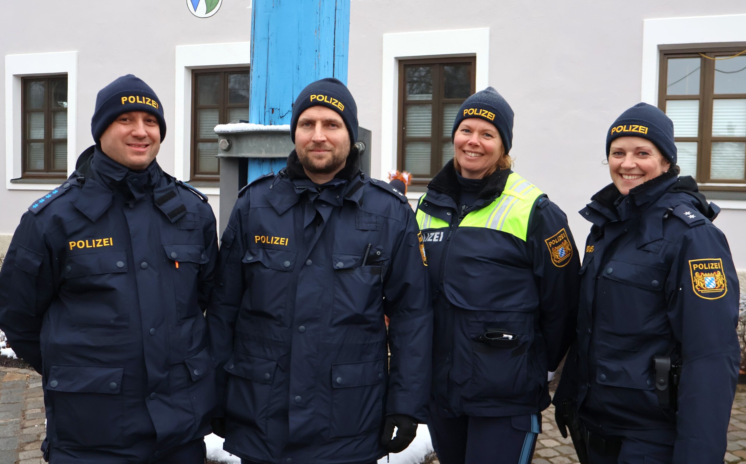 Die echte Polizei war wegen der großen Sicherheits-Vorkehrungen auch vor Ort und winkte fröhlich als Freund und Helfer …
