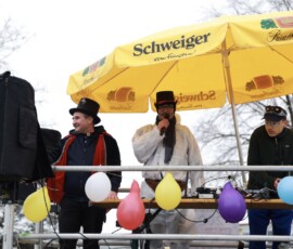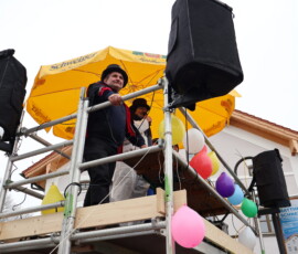 Babensham kennt da nix – quasi im Wellness-Bad durch Edling. Und das bei einer Temperatur um null Grad: Klasse-Stimmung heid beim großen Faschingszug in Edling mit 40 Wagen und Gruppen: Und mit einem Publikum, das „Sweet Caroline – oh oh oh“ durchs Ortszentrum hallen ließ. Dank der tollen Musik, die DJ Lenze Gottwald (Foto unten) auflegte am heutigen Faschingssonntag-Nachmittag. Der Andrang war so groß, dass der Umzug mit dem Beginn a bissal abwartete, damit die noch Eintreffenden rechtzeitig an ihren Plätzen waren.