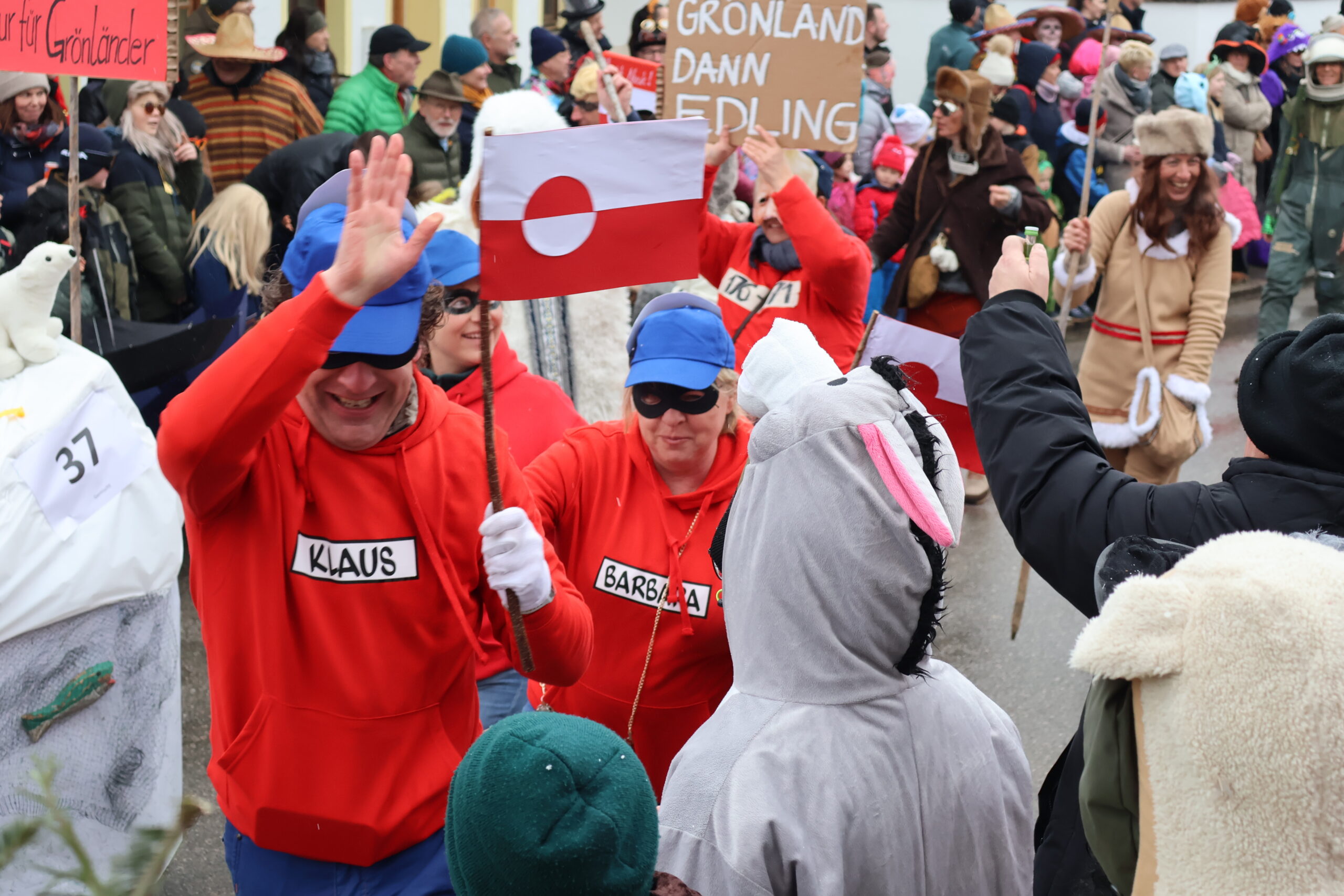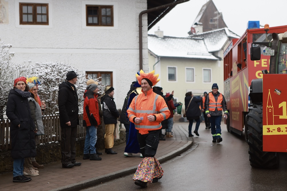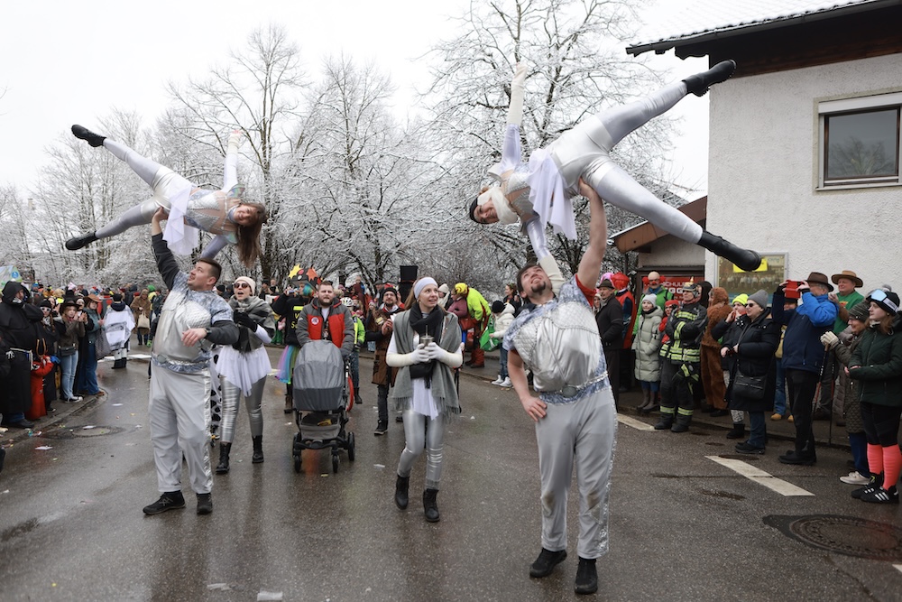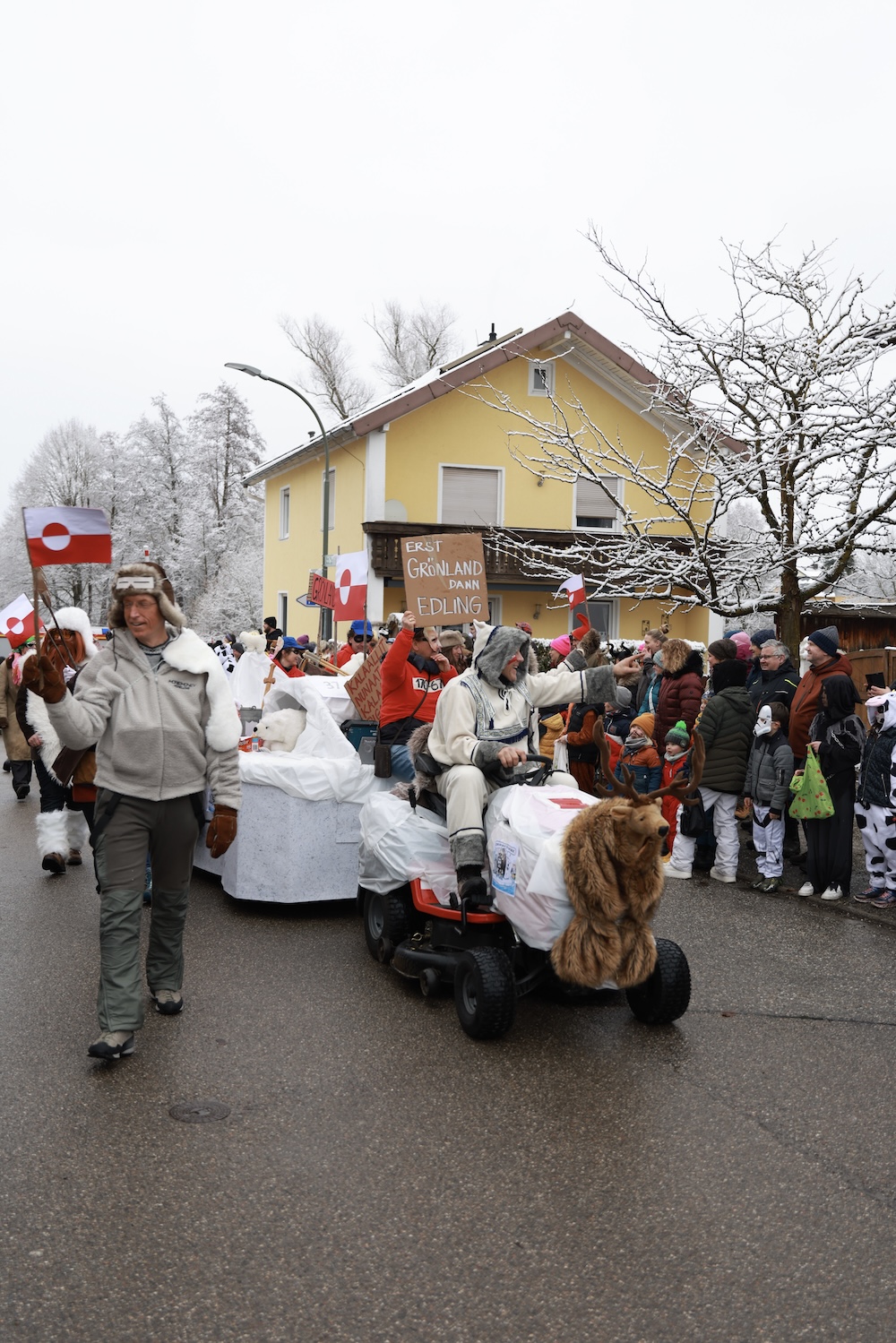 Auch wenn das Wetter nicht so ganz mitspielte: Tausende von Besuchern kamen. Und viele konnten sich gar nicht mehr erinnern, wann es zuletzt einen Faschingszug in Edling bei Schnee gegeben hatte. Schee war des irgendwia. Winter hoid und gar ned koid: Tanzen und hüpfen war ogsagt, aufm Wagen, daneben, davor – egal. Saubane Masken, guade Liadln und Guadln üba Guadln – vom Traubenzucker über Brausepulver-Tüten, Popcorn-Packungen bis zu de Gummibärle …