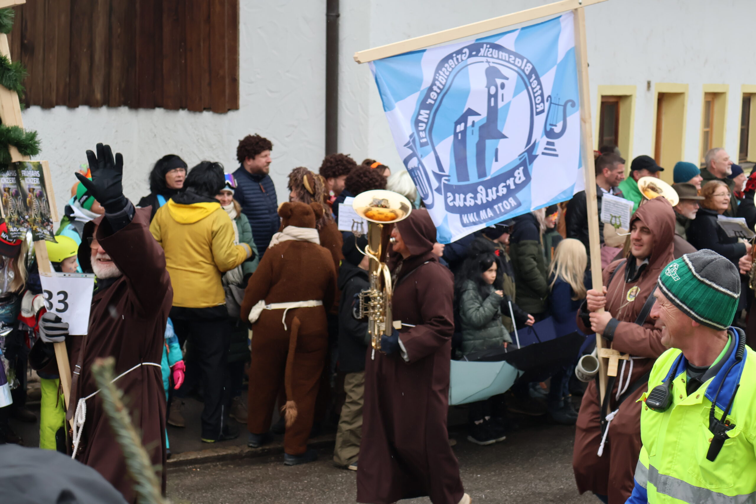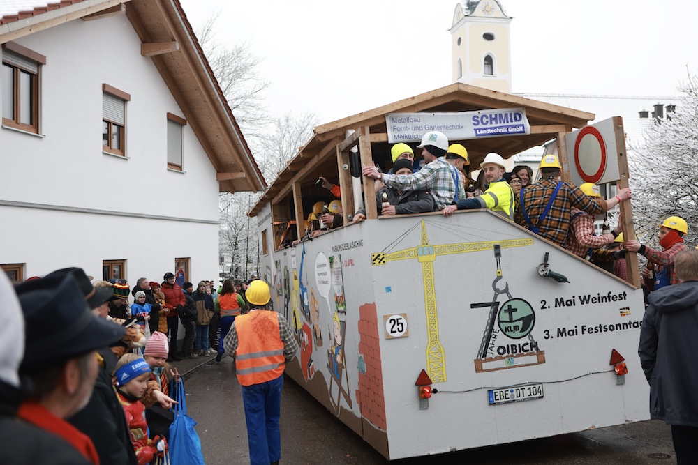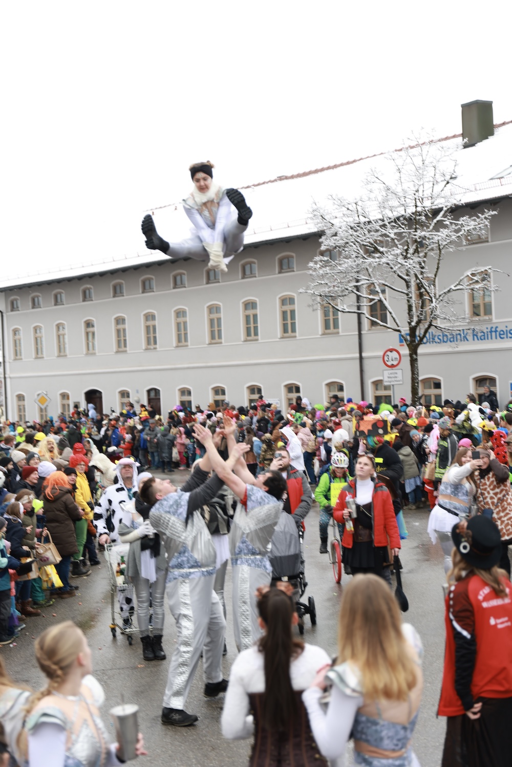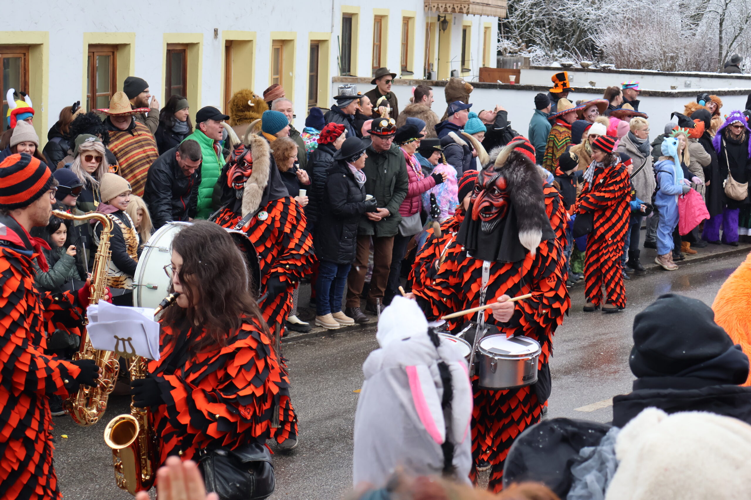 Auch wenn das Wetter nicht so ganz mitspielte: Tausende von Besuchern kamen. Und viele konnten sich gar nicht mehr erinnern, wann es zuletzt einen Faschingszug in Edling bei Schnee gegeben hatte. Schee war des irgendwia. Winter hoid und gar ned koid: Tanzen und hüpfen war ogsagt, aufm Wagen, daneben, davor – egal. Saubane Masken, guade Liadln und Guadln üba Guadln – vom Traubenzucker über Brausepulver-Tüten, Popcorn-Packungen bis zu de Gummibärle …
