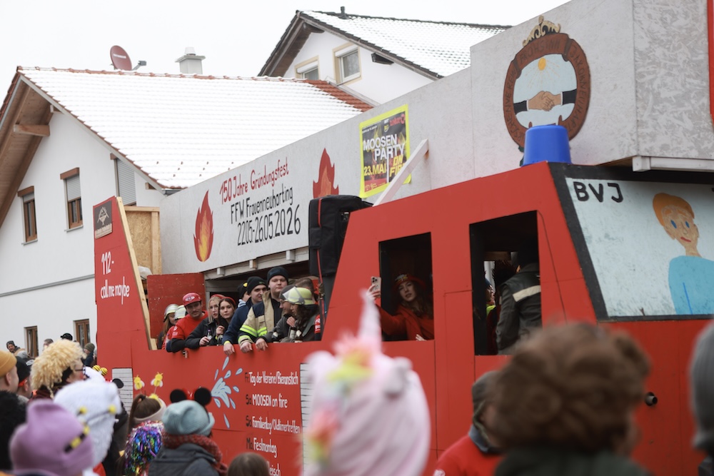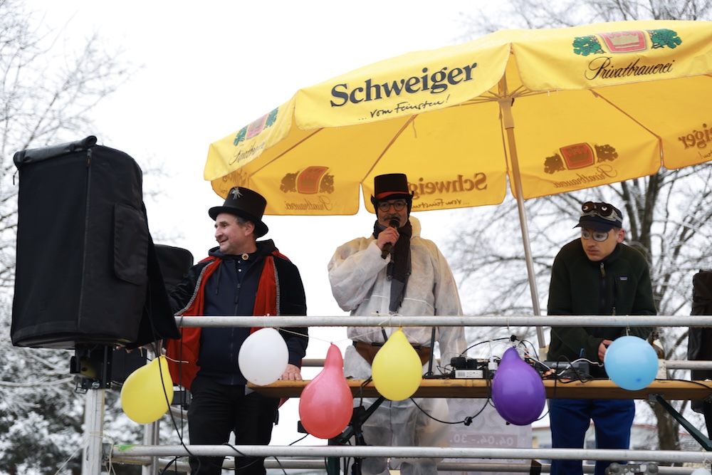 Babensham kennt da nix – quasi im Wellness-Bad durch Edling. Und das bei einer Temperatur um null Grad: Klasse-Stimmung heid beim großen Faschingszug in Edling mit 40 Wagen und Gruppen: Und mit einem Publikum, das „Sweet Caroline – oh oh oh“ durchs Ortszentrum hallen ließ. Dank der tollen Musik, die DJ Lenze Gottwald (Foto unten) auflegte am heutigen Faschingssonntag-Nachmittag. Der Andrang war so groß, dass der Umzug mit dem Beginn a bissal abwartete, damit die noch Eintreffenden rechtzeitig an ihren Plätzen waren.
