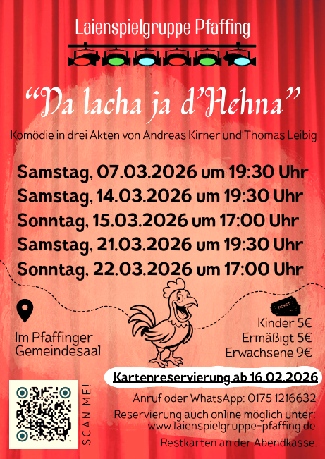 Hierzu gibt es unter www.laienspielgruppe-pfaffing.de einen Link zur Online-Reservierung.